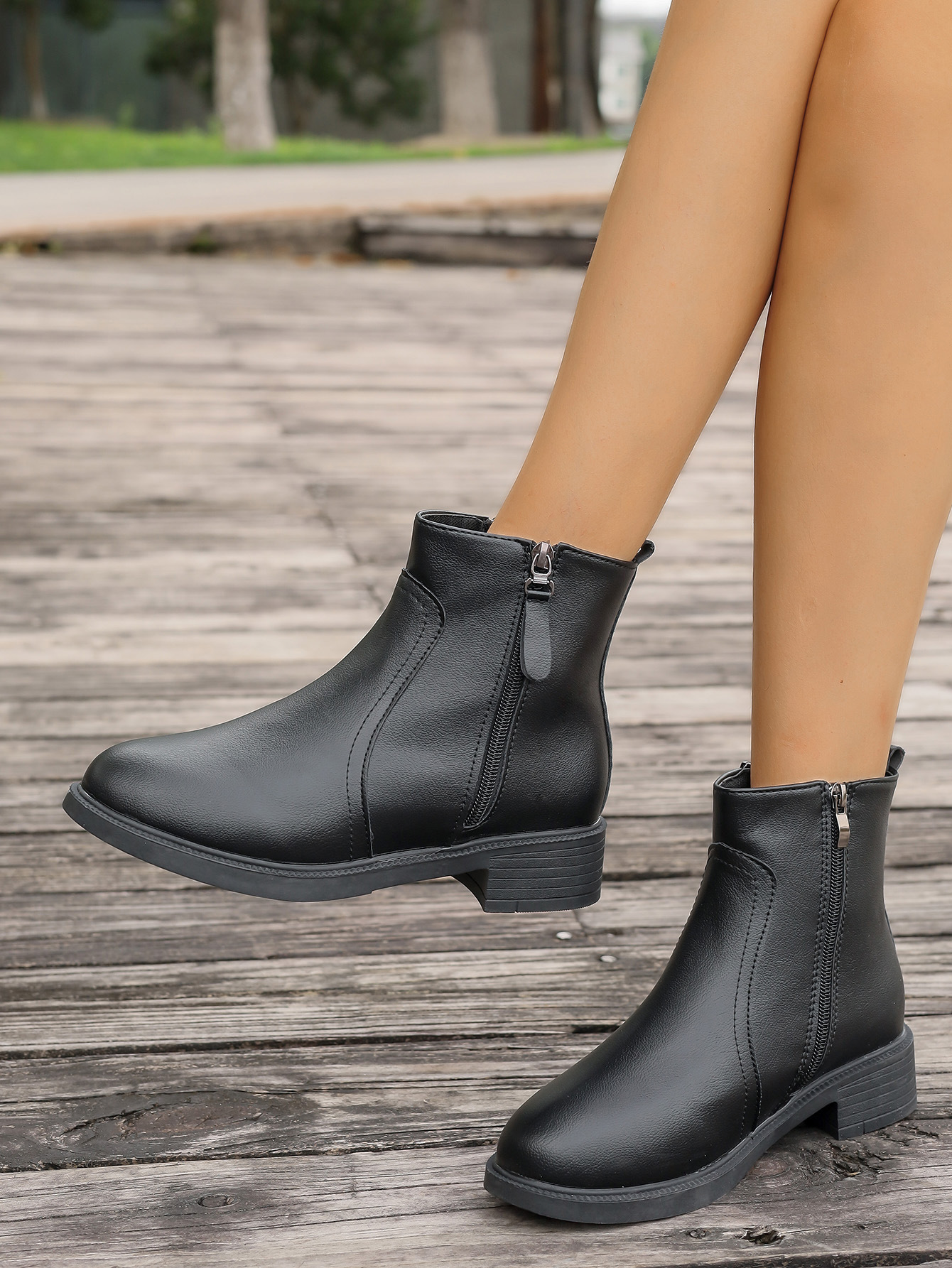 2025 신상 여성부츠, 더블지퍼, 사이드지퍼, 아우터용, 솔리드 컬러, 다용도, 심플 패션부츠, 슬림 여성부츠스토어 가기