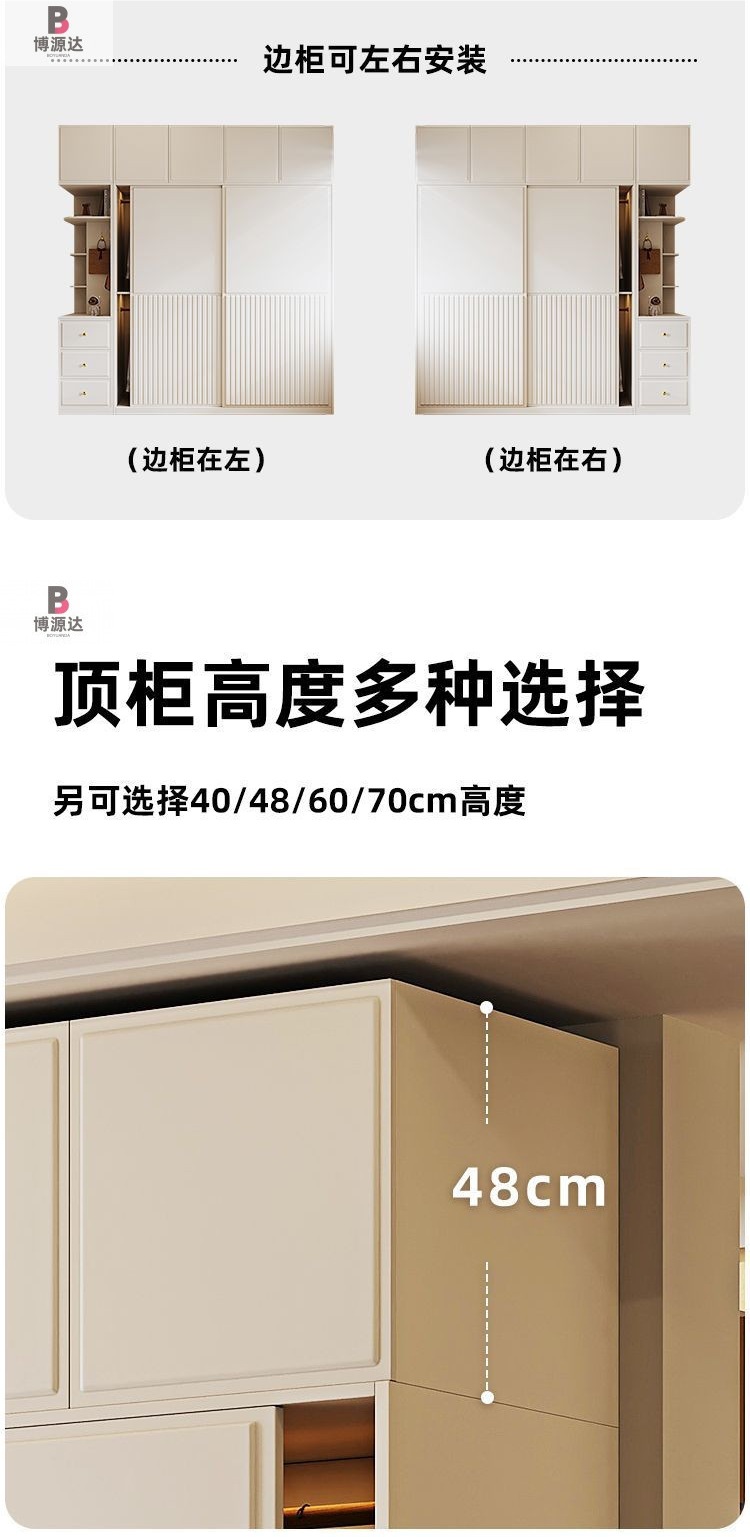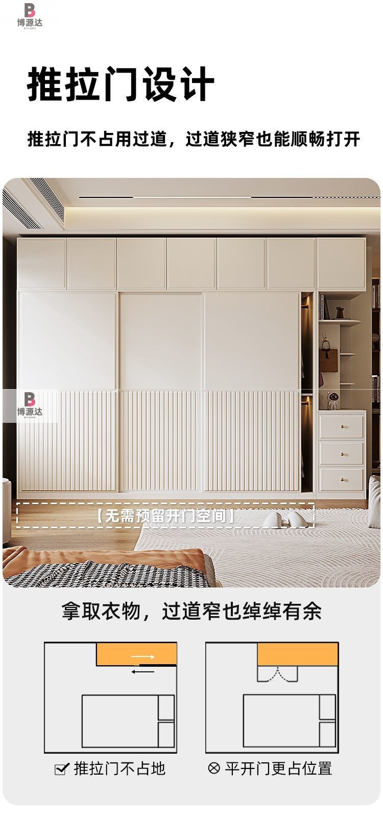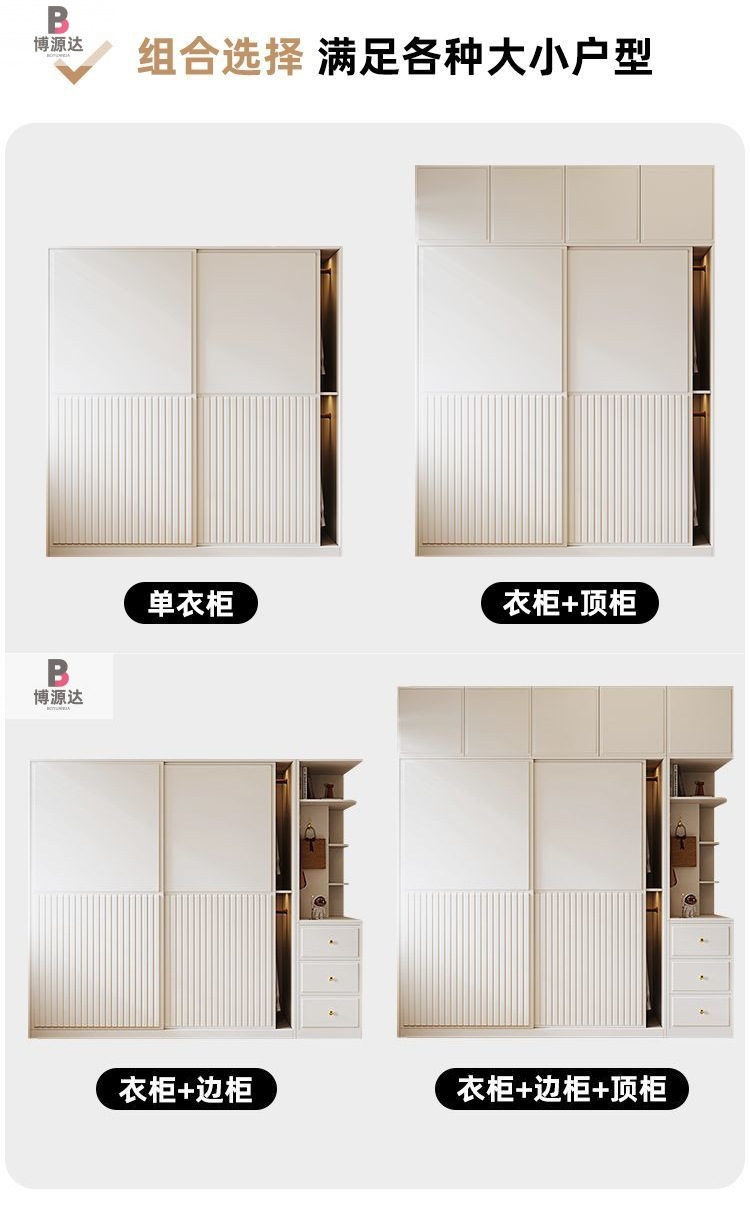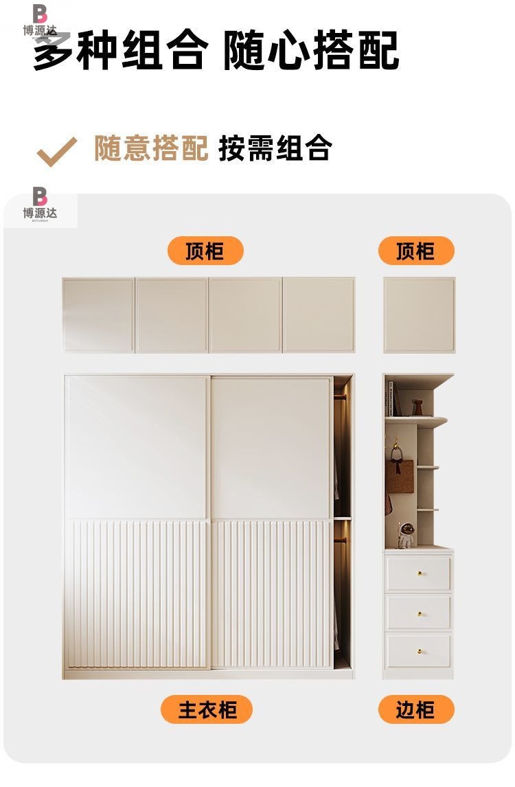 크림 스타일 옷장 침실 흰색 슬라이딩 도어 옷장 간단한 현대 작은 아파트 가정용 슬라이딩 도어 스토리지 옷장스토어 가기