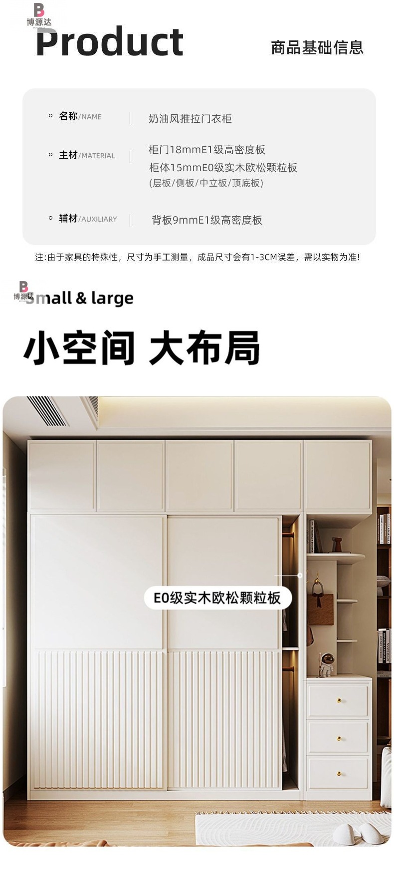 크림 스타일 옷장 침실 흰색 슬라이딩 도어 옷장 간단한 현대 작은 아파트 가정용 슬라이딩 도어 스토리지 옷장