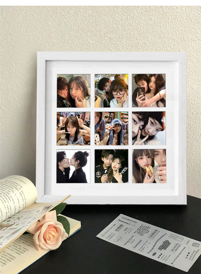 ✅ Jiugongge 단단한 나무 사진 프레임 테이블 사진 세척 사용자 정의 diy 퍼즐 커플 폴라로이드 인쇄 기념 앨범 걸기