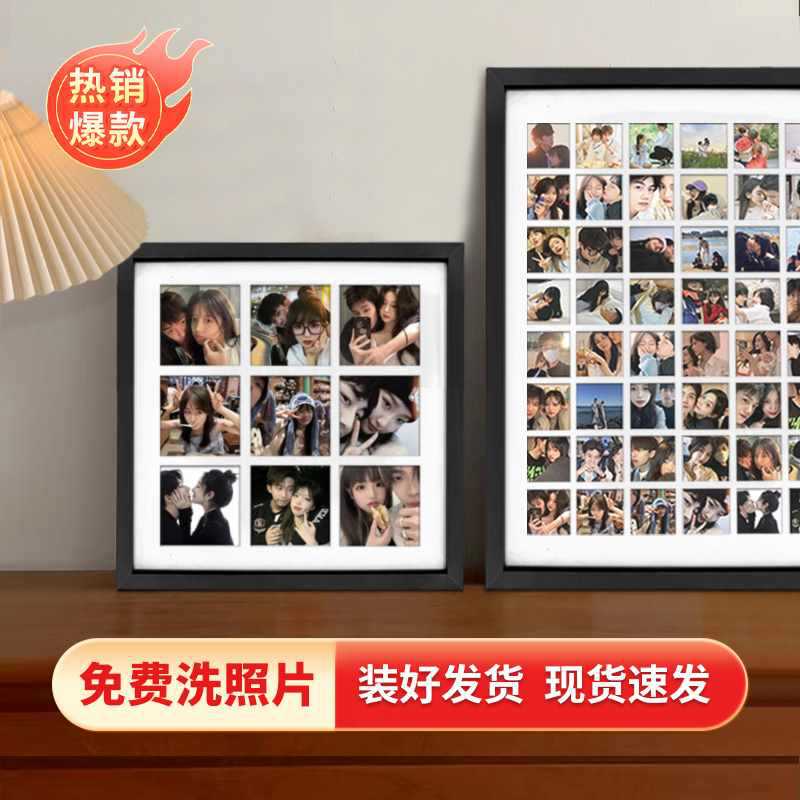 ✅ Jiugongge 단단한 나무 사진 프레임 테이블 사진 세척 사용자 정의 diy 퍼즐 커플 폴라로이드 인쇄 기념 앨범 걸기스토어 가기