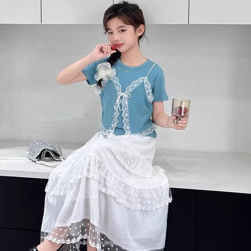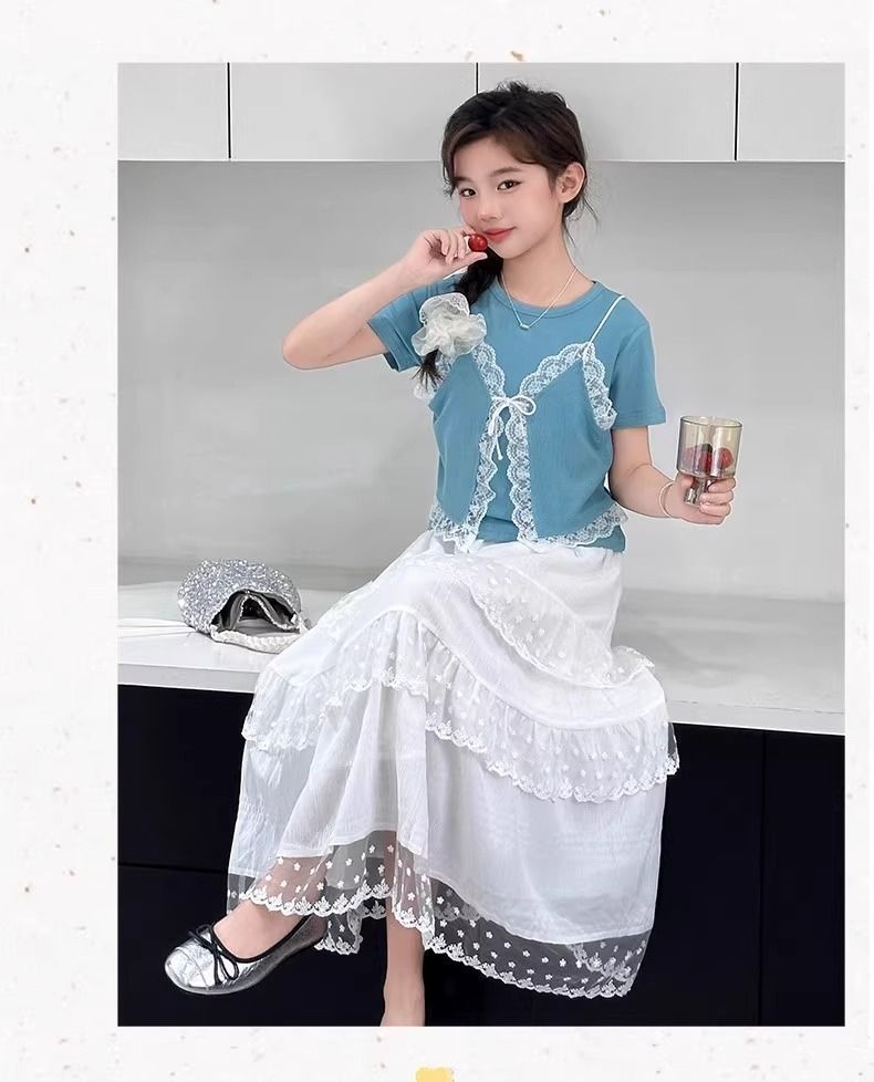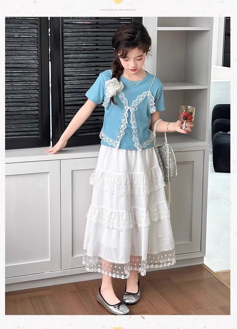 여아용 새 여름 스커트, 아동용 흰색 케이크 스커트, 여아용 여름 드레스, 다용도 여름 중간 길이 스커트, 배송스토어 가기
