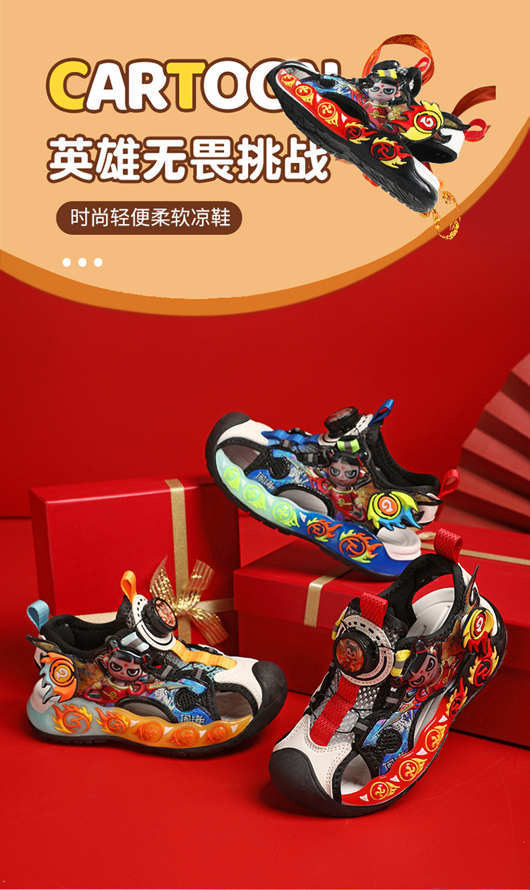 엄선된 Nezha Naohai 어린이 스포츠 샌들 Baotou 소년 여름 중공 통기성 해변 신발 어린이 신발스토어 가기