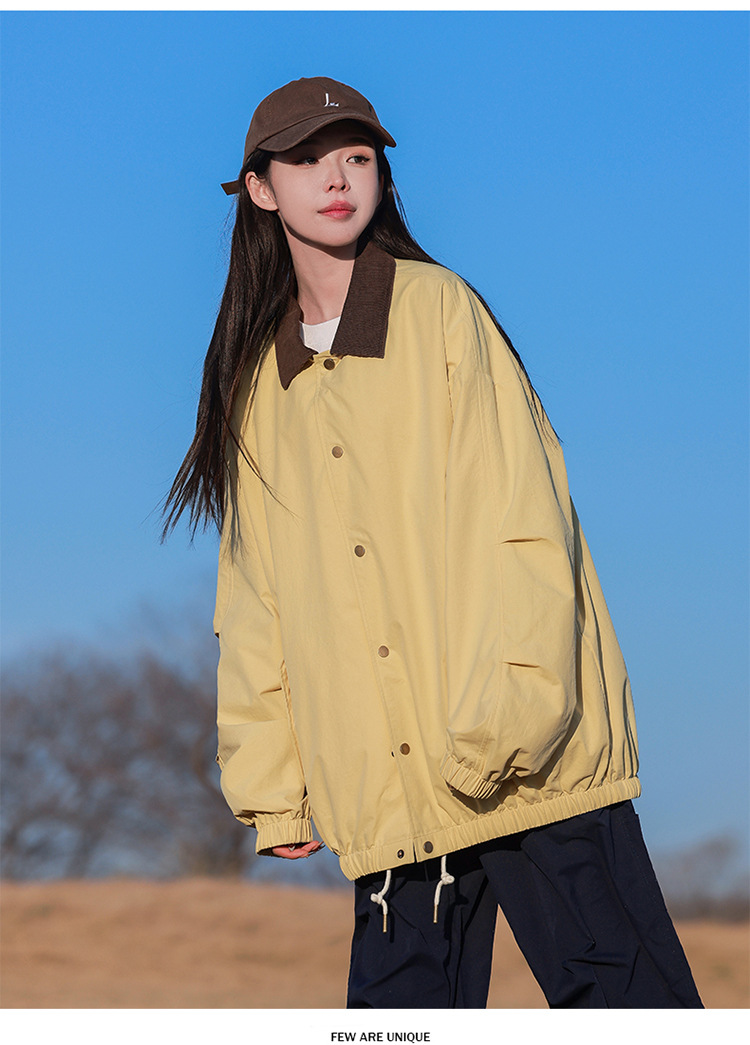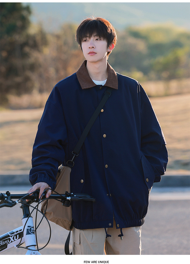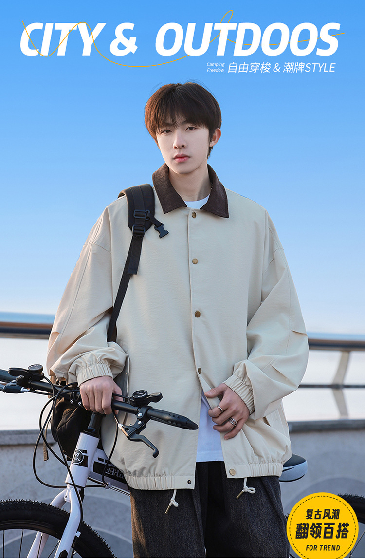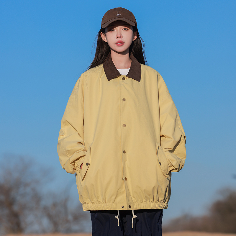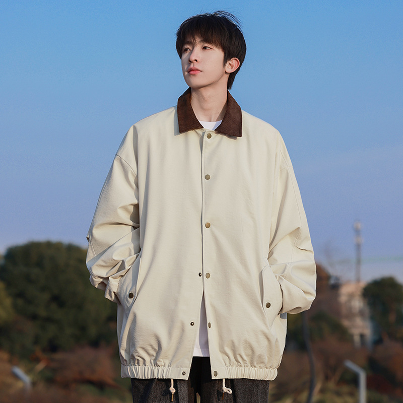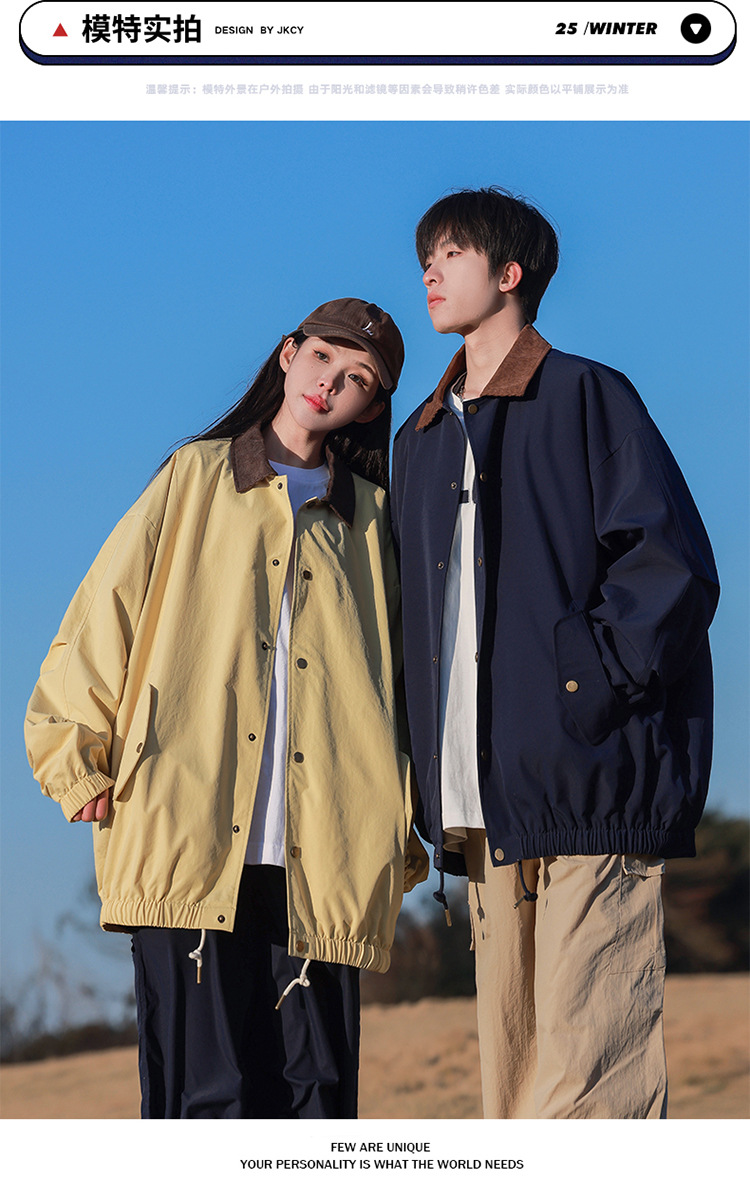 Jack Chuanyang 남성 일본 카하트 재킷 여성 봄, 가을 복고풍 느슨한 대비 색상 옷깃 작업복 방수 재킷스토어 가기