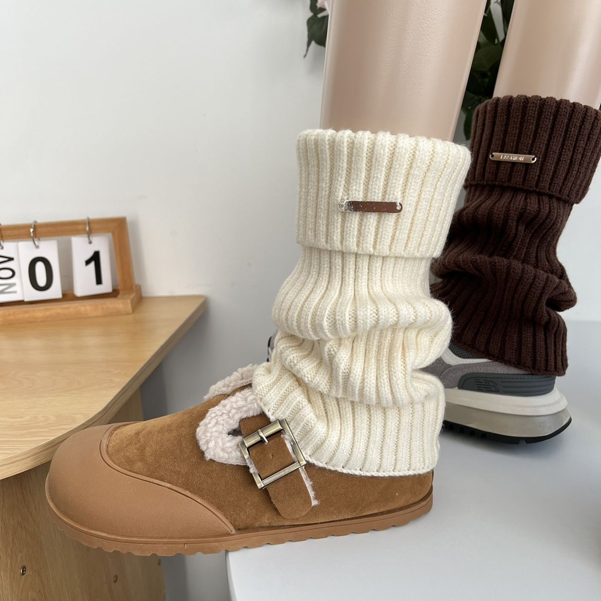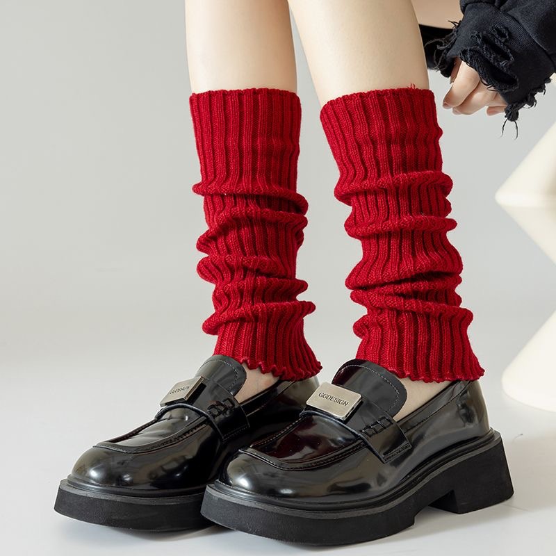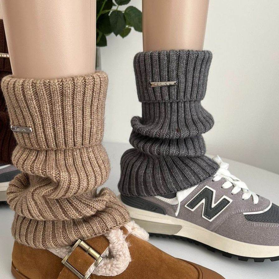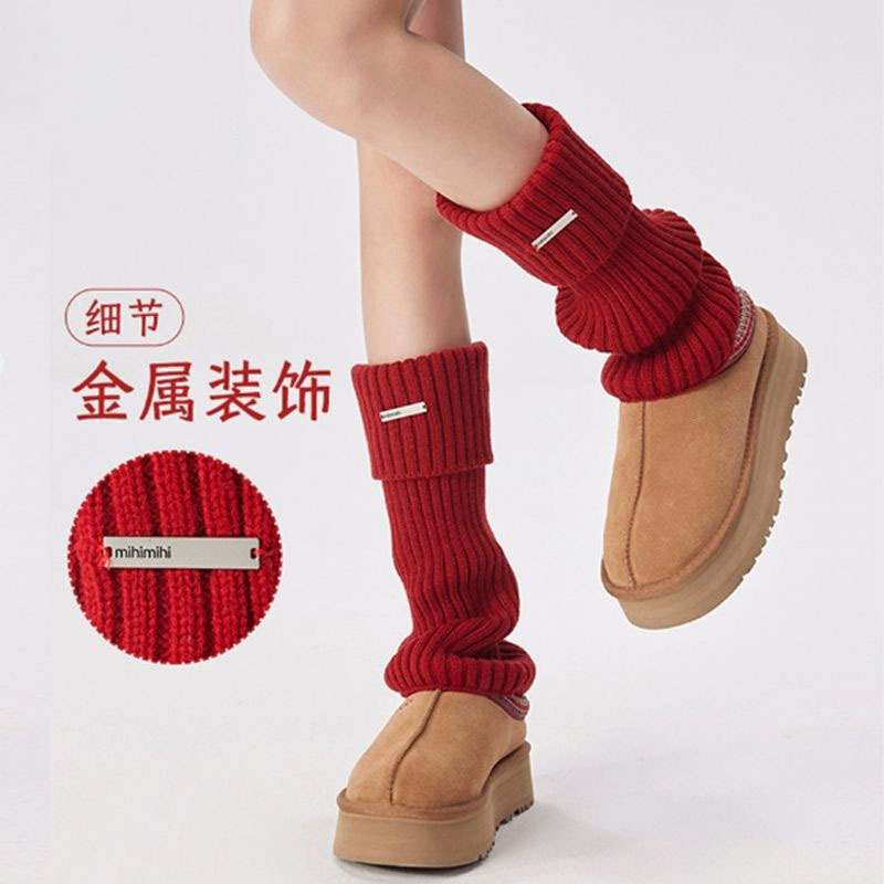 여성용 레드 양말, 패셔너블하고 다재다능한 종아리 양말, 메탈 라벨, 아메리칸 레트로 가을 겨울 캐시미어 니트 양말스토어 가기