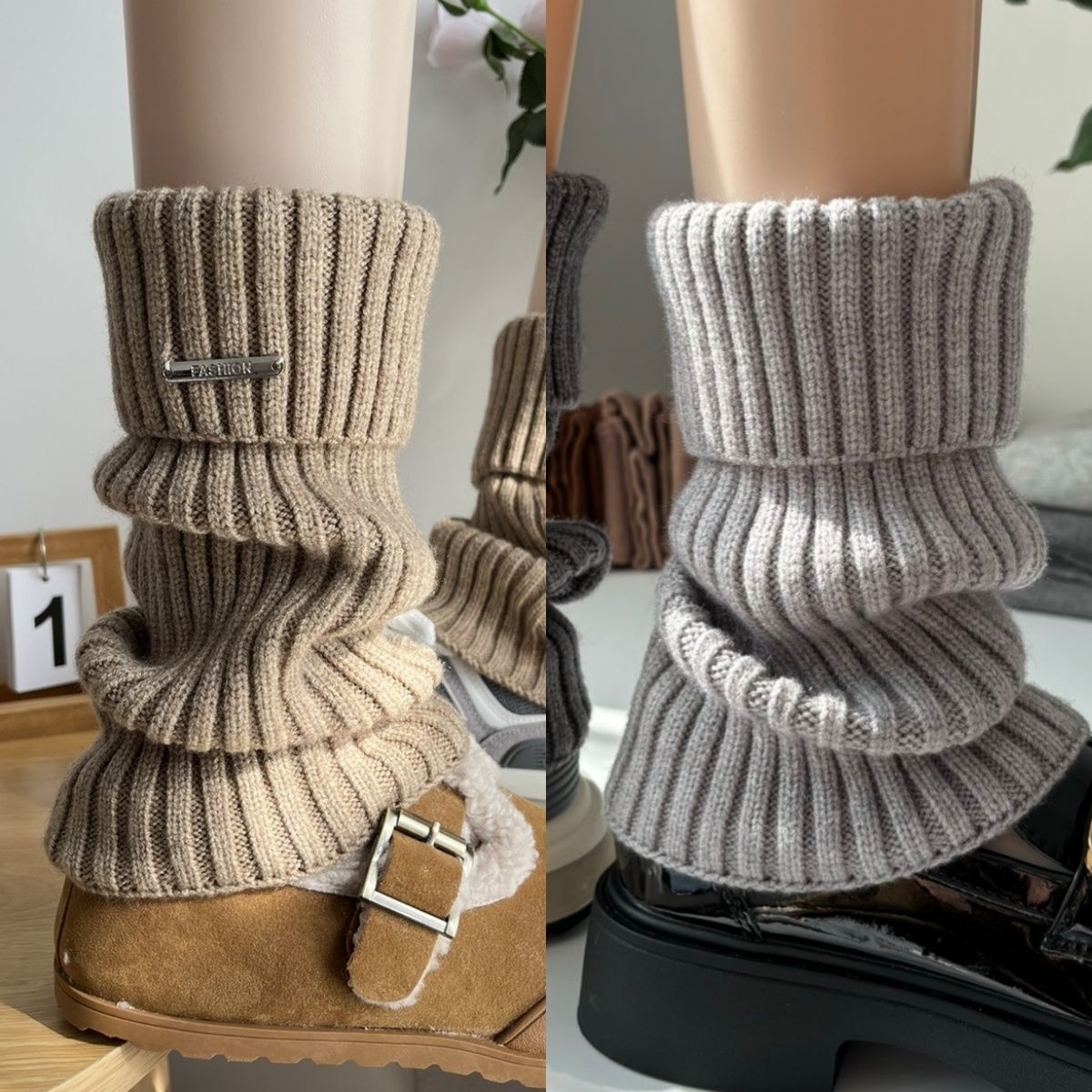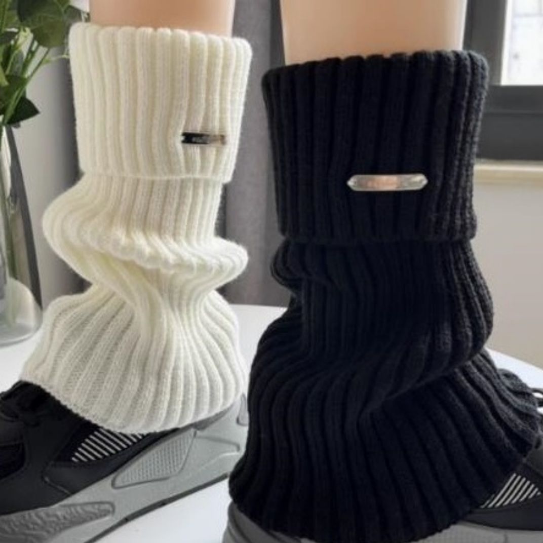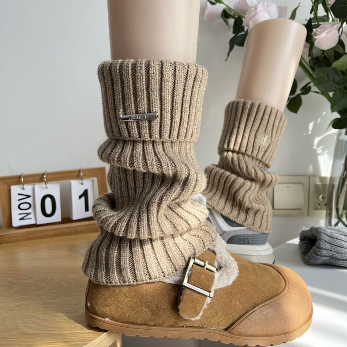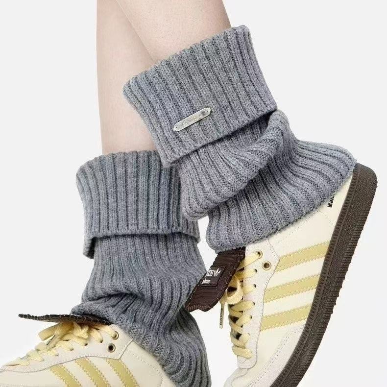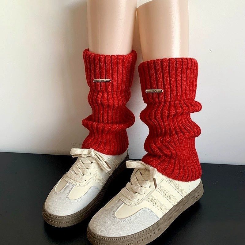 여성용 레드 양말, 패셔너블하고 다재다능한 종아리 양말, 메탈 라벨, 아메리칸 레트로 가을 겨울 캐시미어 니트 양말