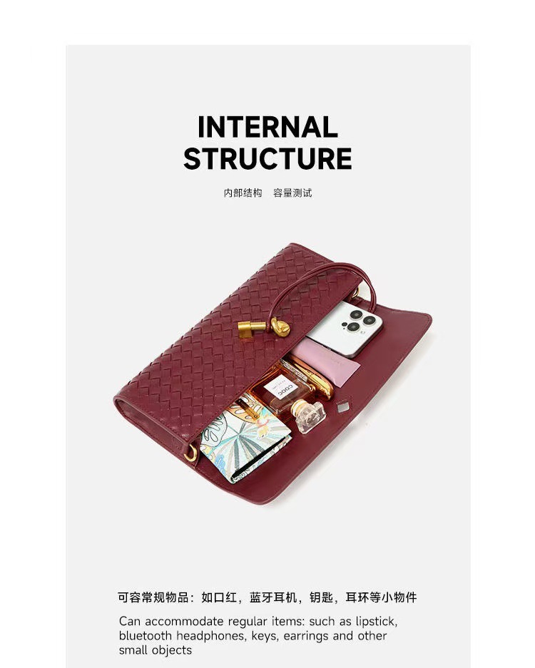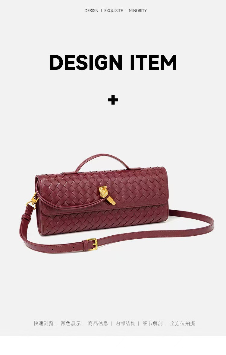 2025 새로운 틈새 직조 숄더 바게트 백, 패셔너블한 가로 클러치 백, 오르간 여성용 크로스 바디 백, 롱 백