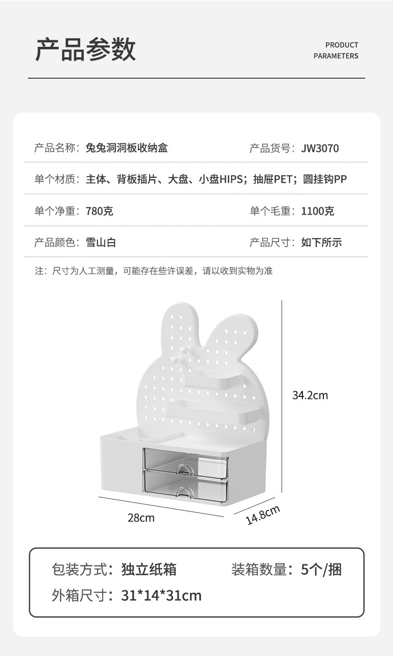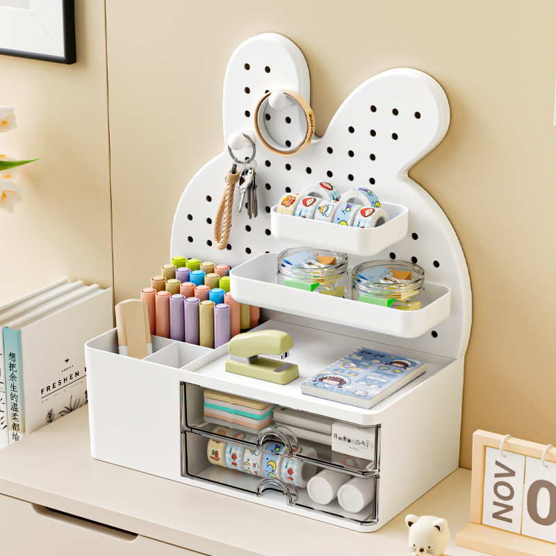 桌面兔兔洞洞板大容量置物架工位学习办公高颜值书桌收纳盒整理盒