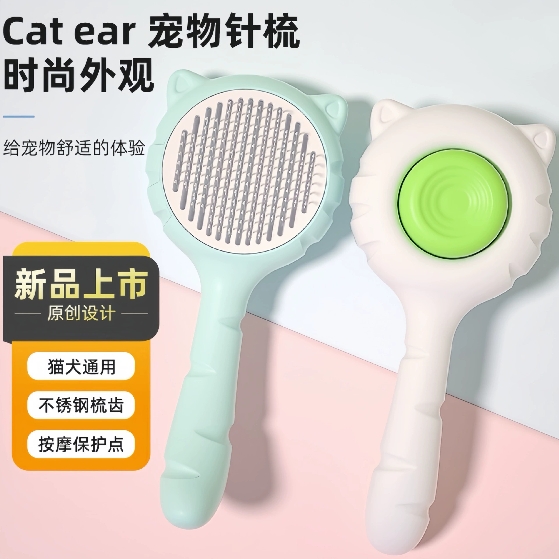 애완동물 빗, 벼룩 빗, 개와 고양이 빗, 고양이 귀 모양 털 제거 빗, 부동 털 제거 브러시, 원클릭 털 제거