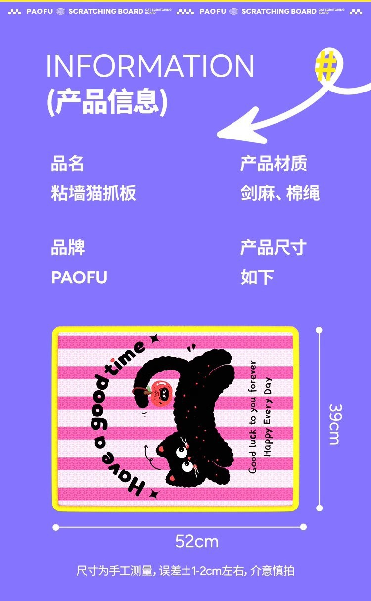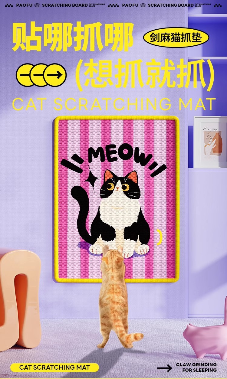 • 만화 컬러 프린트 사이잘삼 매트 - 행운의 고양이 [걱정할 필요가 없습니다]