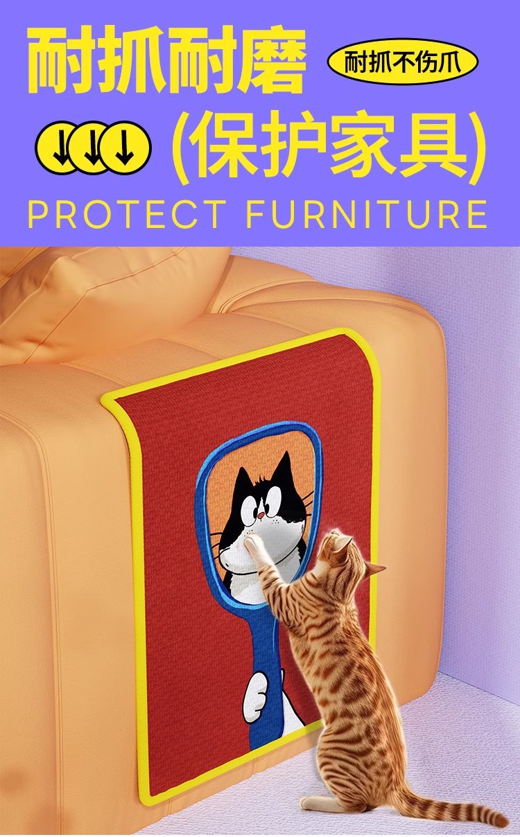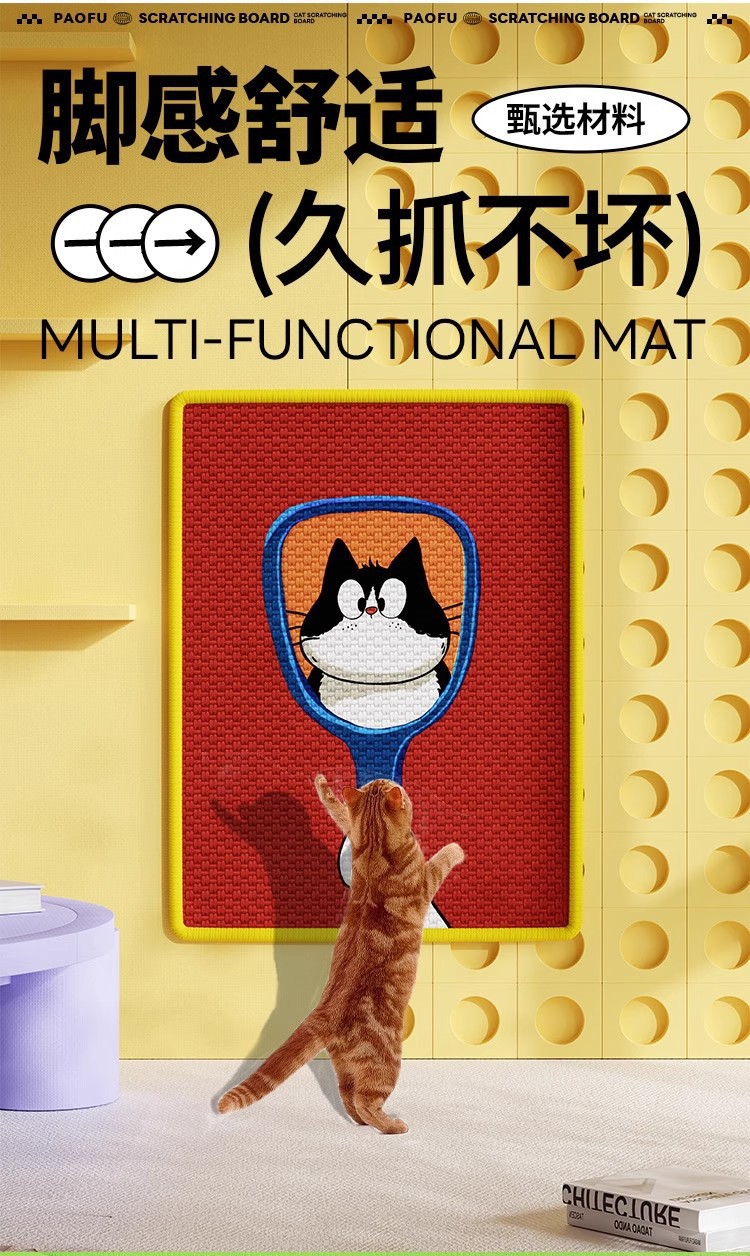 • 만화 컬러 프린트 사이잘삼 매트 - 행운의 고양이 [애정 어린 고양이]