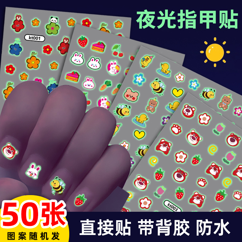 어린이와 소녀를위한 어두운 손톱 스티커 방수 아기 네일 스티커 만화 귀여운 형광 스티커 미니 작은 스티커스토어 가기