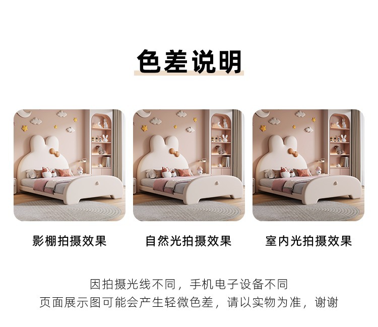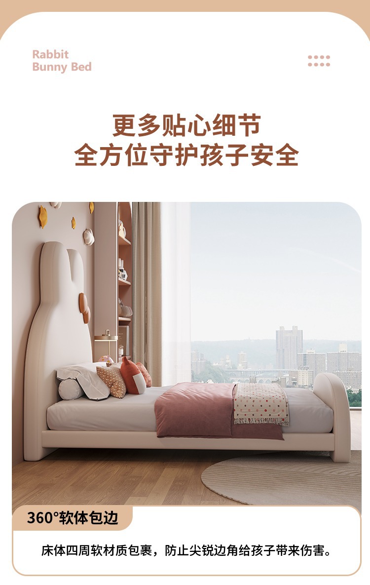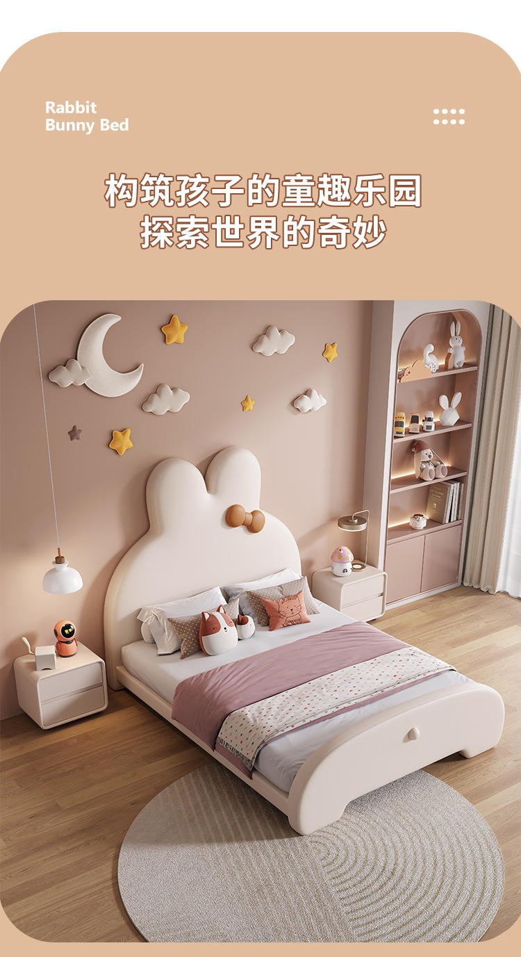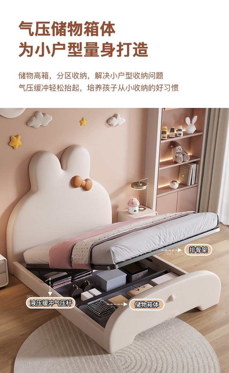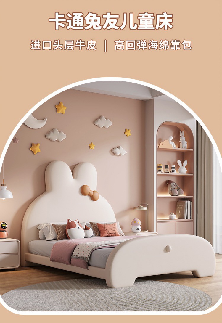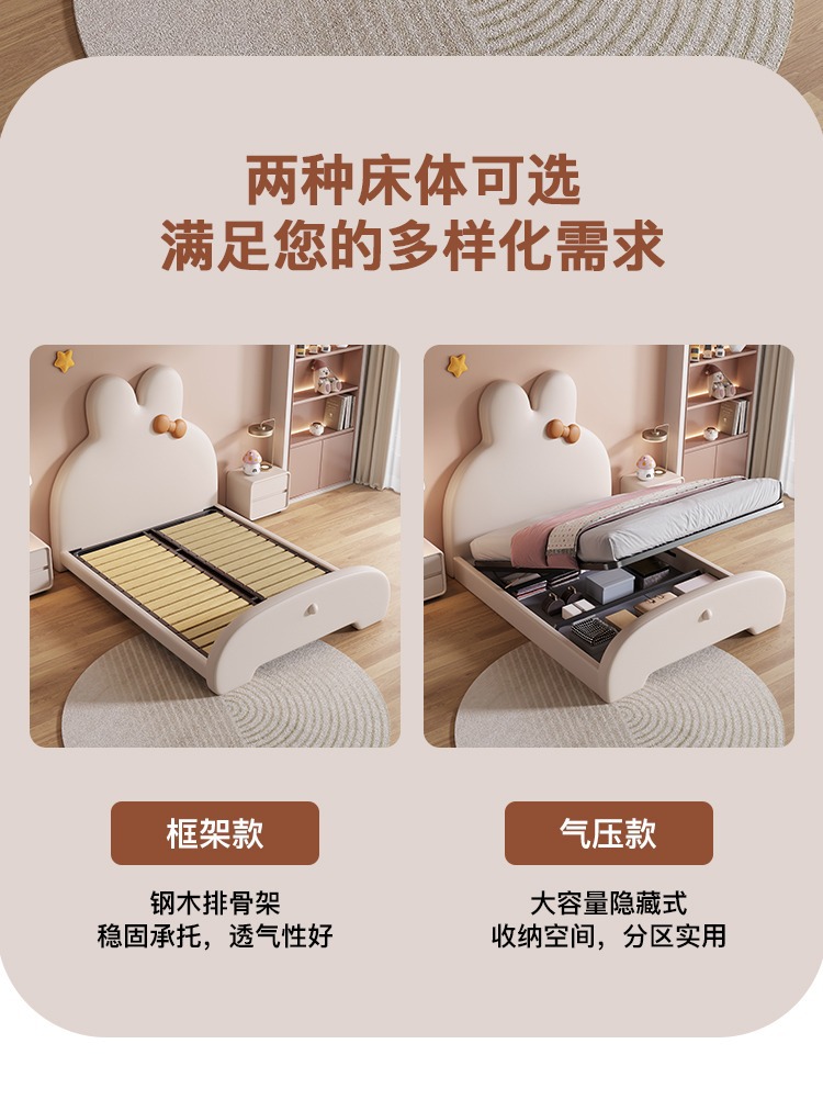 부드러운 귀여운 토끼 침대 현대 미니멀리스트 1.5m 가죽 단단한 나무 어린이 침대 1.2m 크림 스타일 침실 부드러운 포장 공주 침대스토어 가기