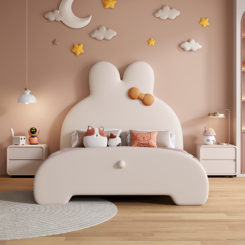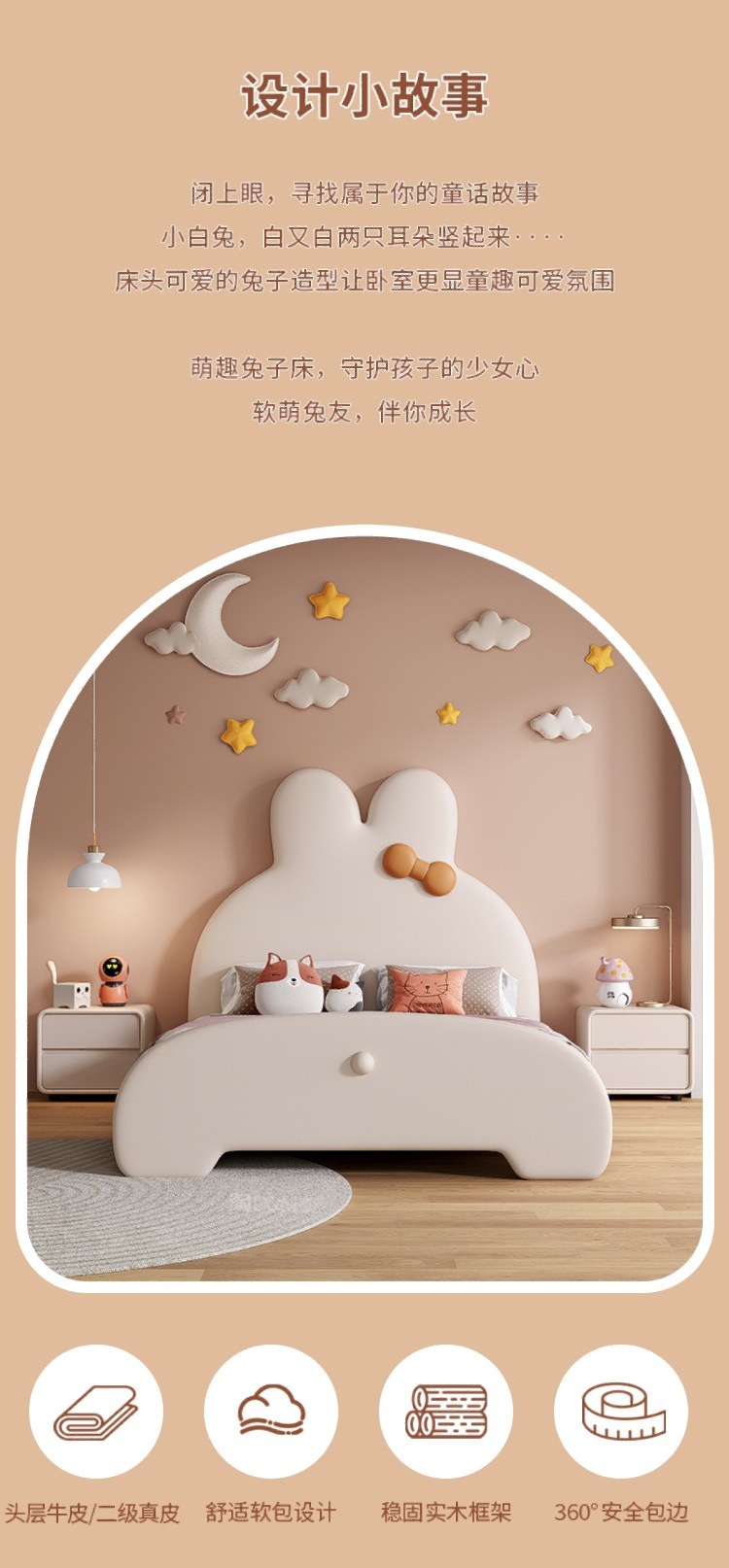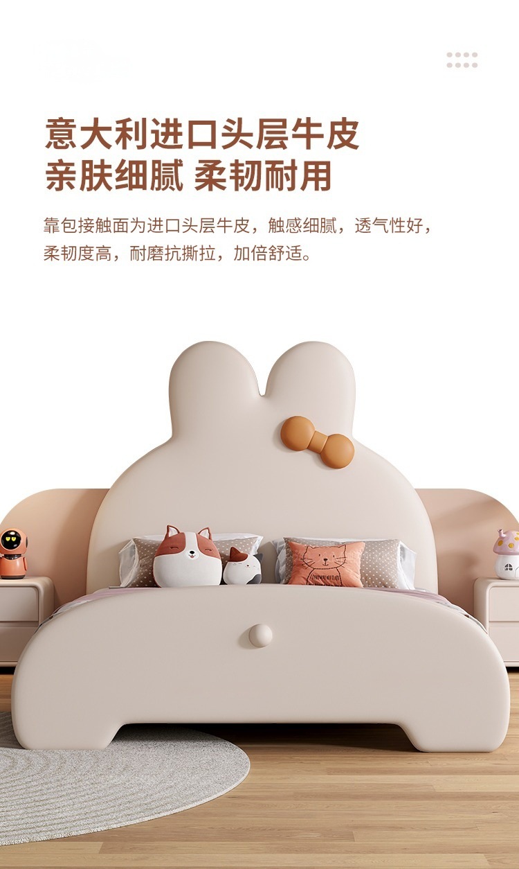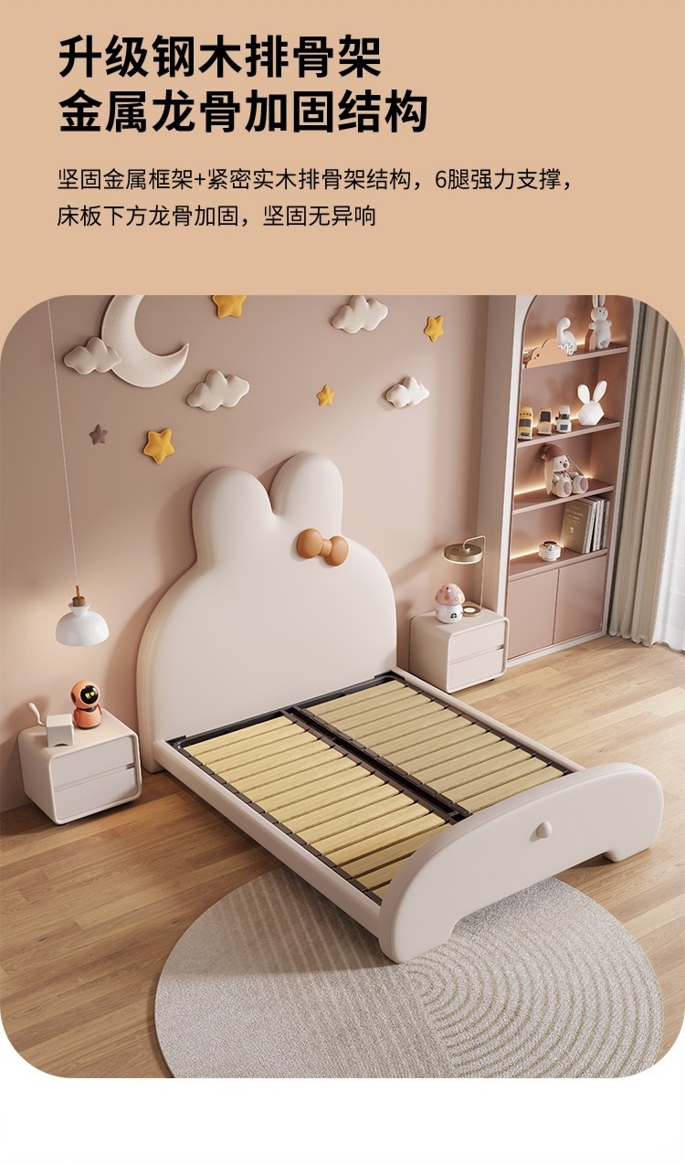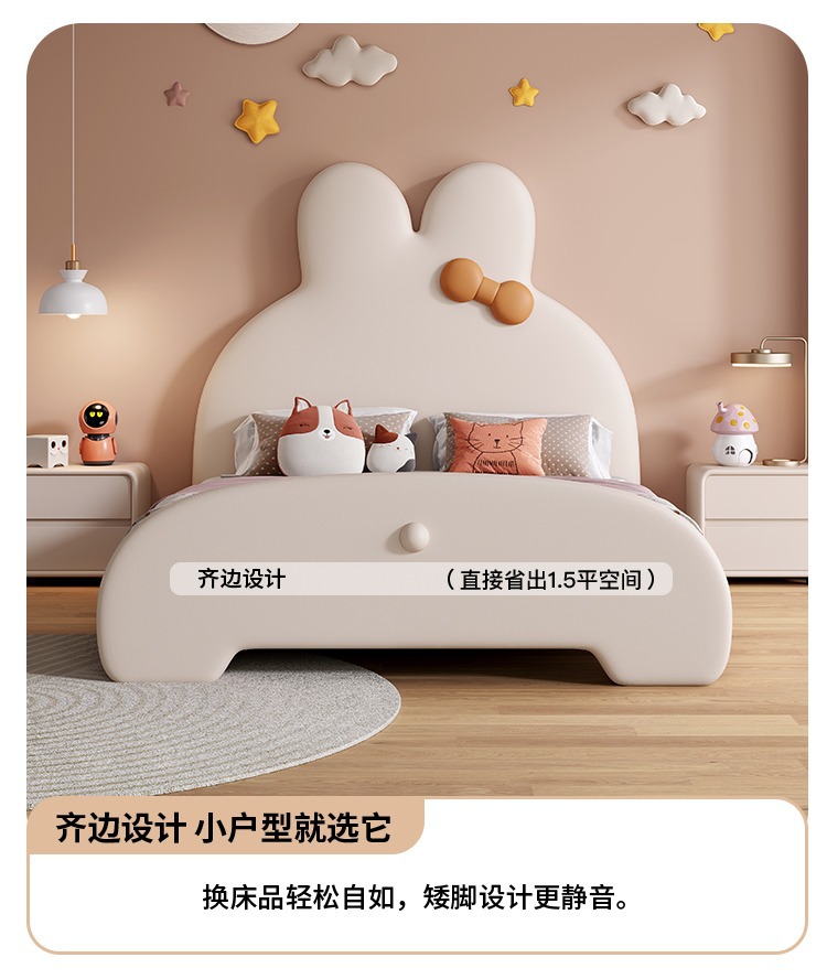 부드러운 귀여운 토끼 침대 현대 미니멀리스트 1.5m 가죽 단단한 나무 어린이 침대 1.2m 크림 스타일 침실 부드러운 포장 공주 침대
