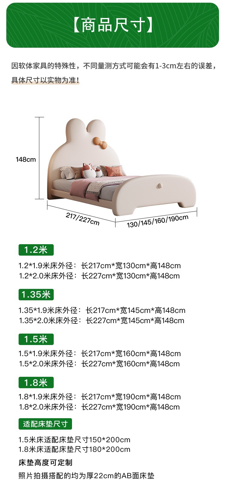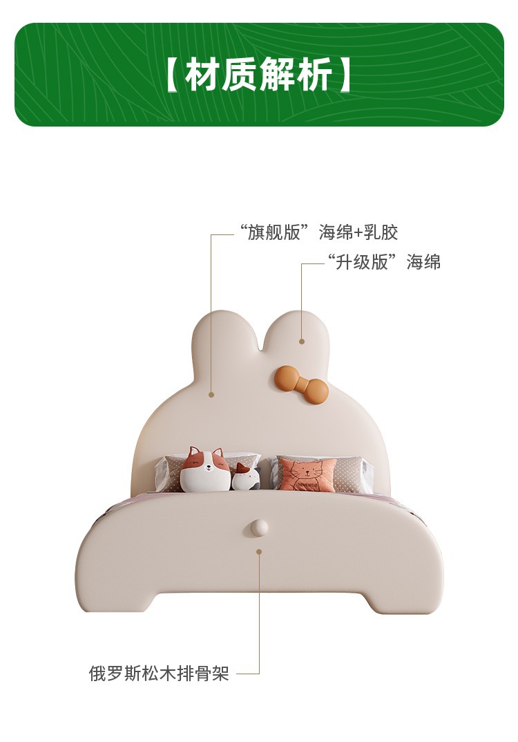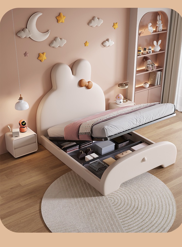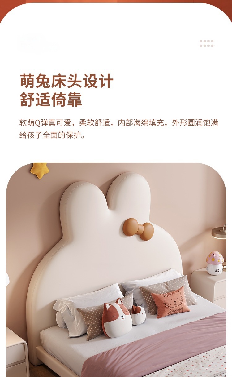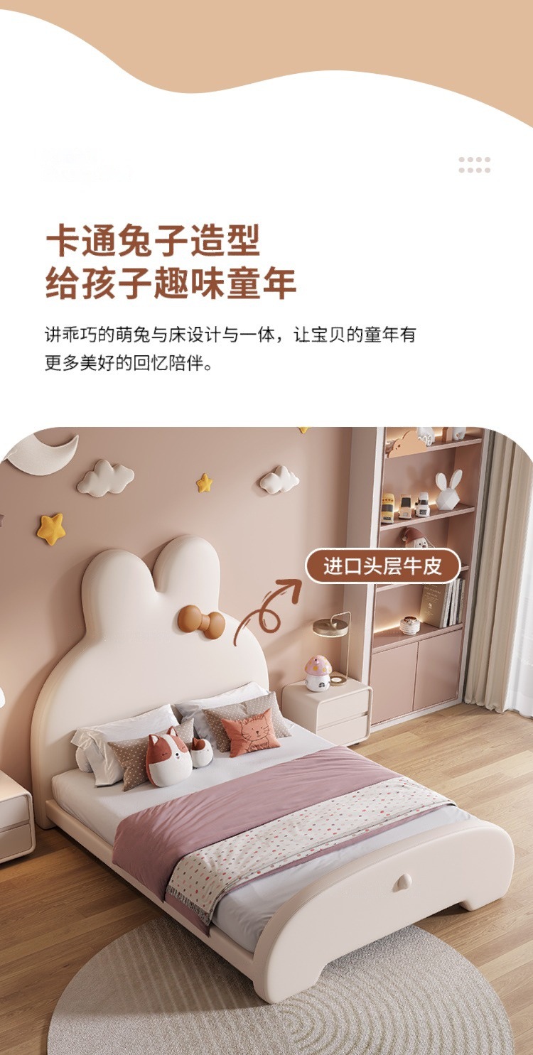 부드러운 귀여운 토끼 침대 현대 미니멀리스트 1.5m 가죽 단단한 나무 어린이 침대 1.2m 크림 스타일 침실 부드러운 포장 공주 침대