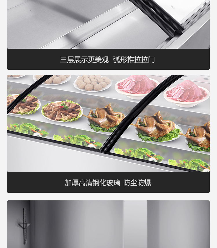 계단식 얼음대, 냉장 및 신선육, 해산물, 조리된 요리, 주방냉동고, 상업용 조리식품 캐비닛, 레스토랑 주문 캐비닛