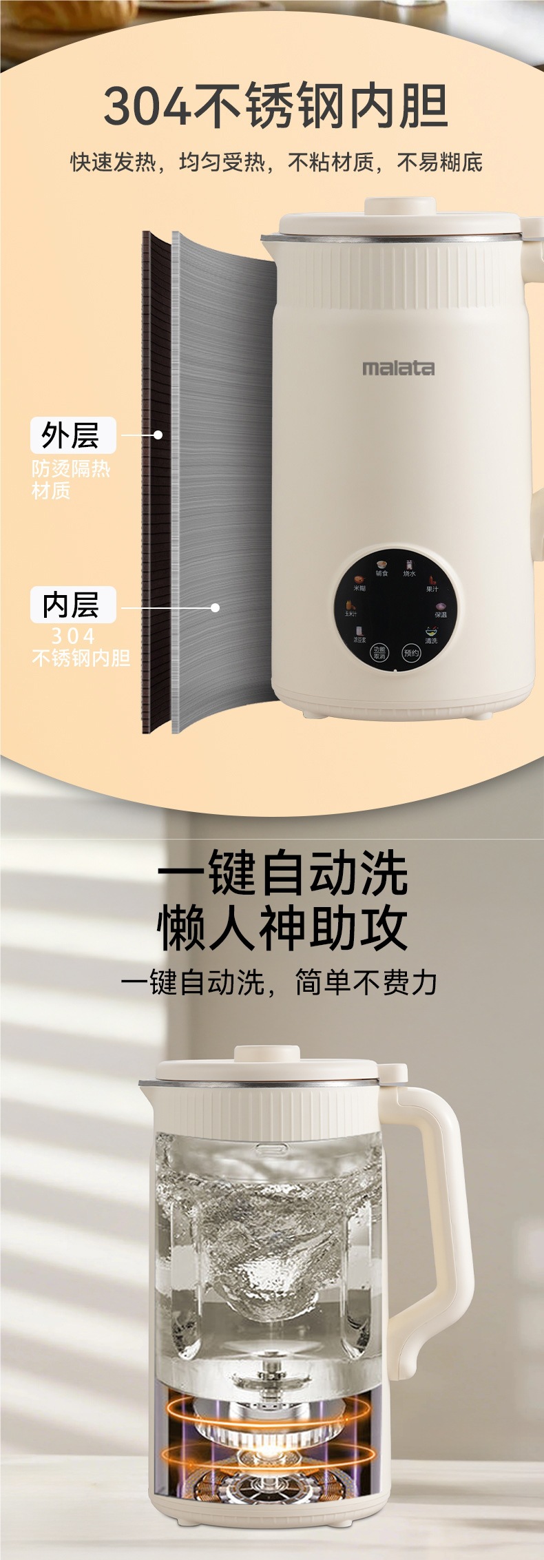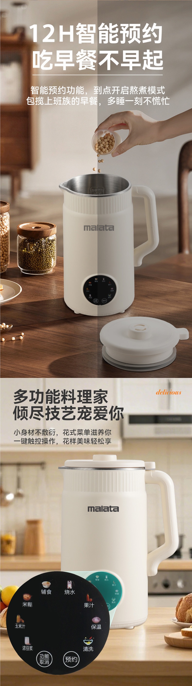 Wanlida 48 블레이드 벽 파괴 기계 1600ml 대용량 무조리 및 무조리 콩 가정용 완전 자동 두유 기계