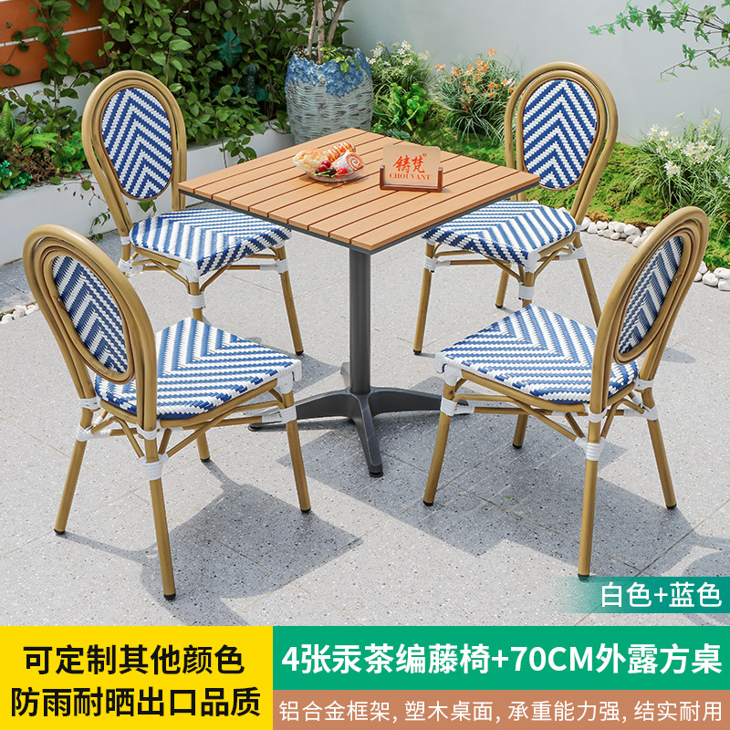 야외 안뜰 테이블과 의자, 레저 정원 외부 등나무 의자, 알루미늄 합금 플라스틱 목재 밀크티 숍, 카페, 상업 거리 테이블스토어 가기