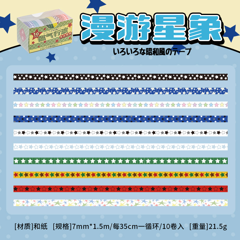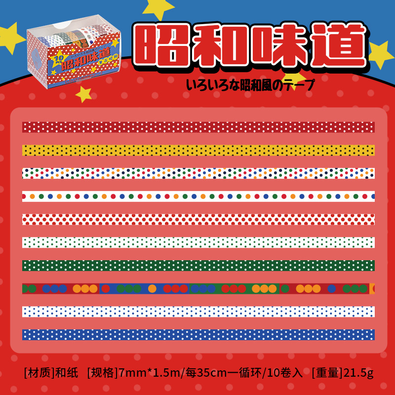 Yuxian 기본 Washi 테이프 세트 Showa 노트 레트로 스타 스트립 장식 핸드북 DIY 콜라주 재료스토어 가기