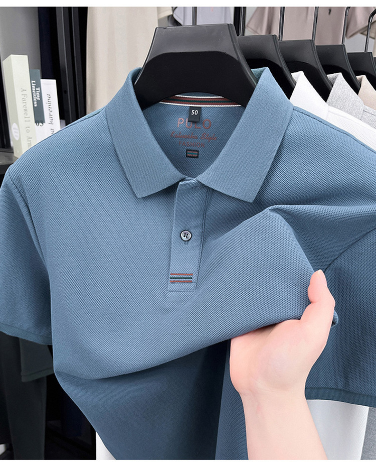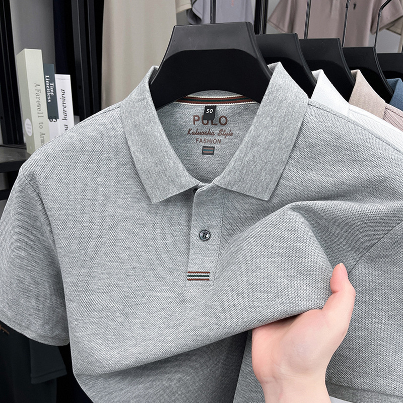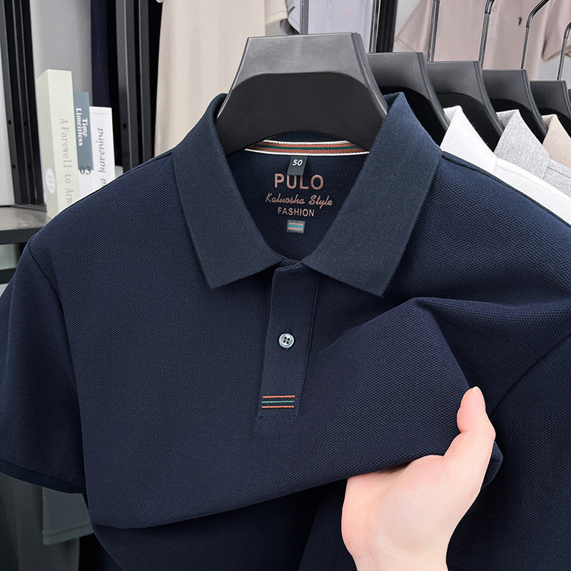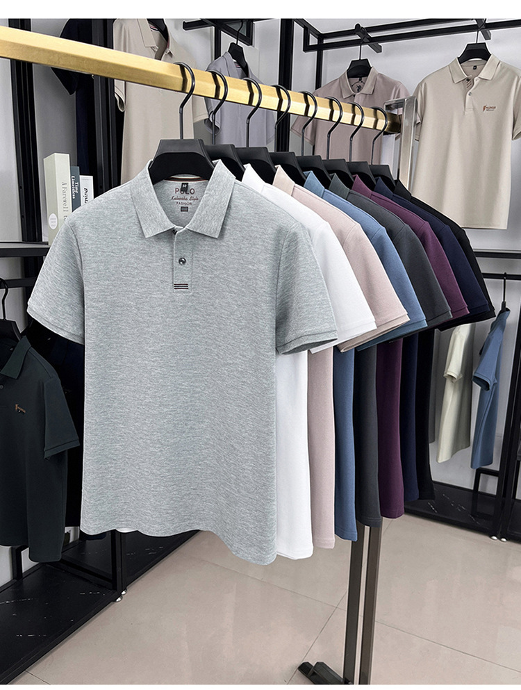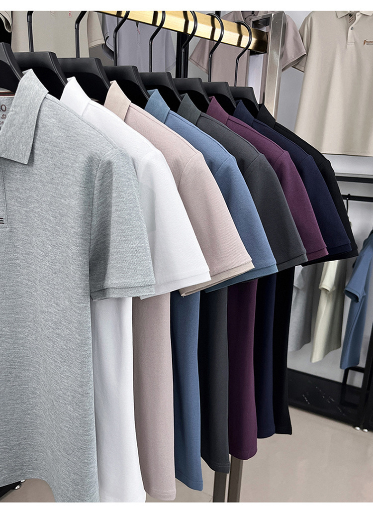 고품질 면 자수 남성 폴로 셔츠 반팔 상의 캐주얼 비즈니스 중년 및 청년 아빠복 수출용스토어 가기