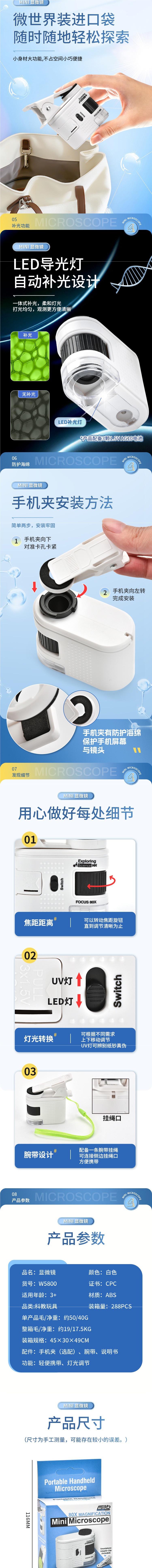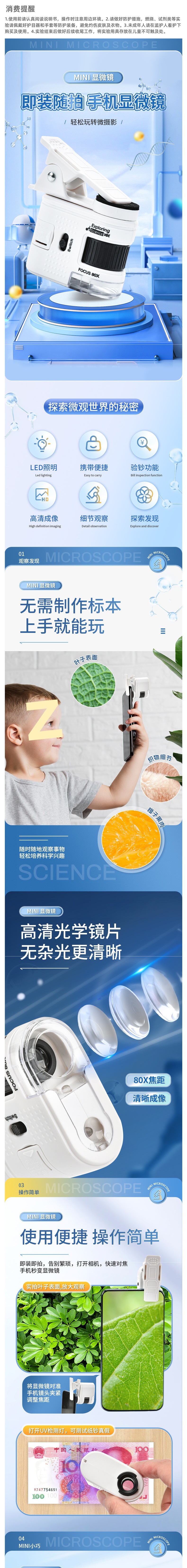 • [새 모델] 미니 휴대용 현미경 + 끈 + 휴대폰 클립 + 표본 12종