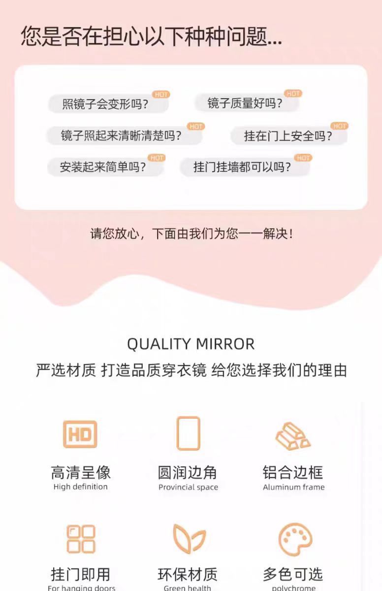 문 뒤 전신 거울, 드레싱 거울, 문걸이형 전신 거울, 기숙사 침실 옷장 문, 방폭형 및 변형 방지스토어 가기