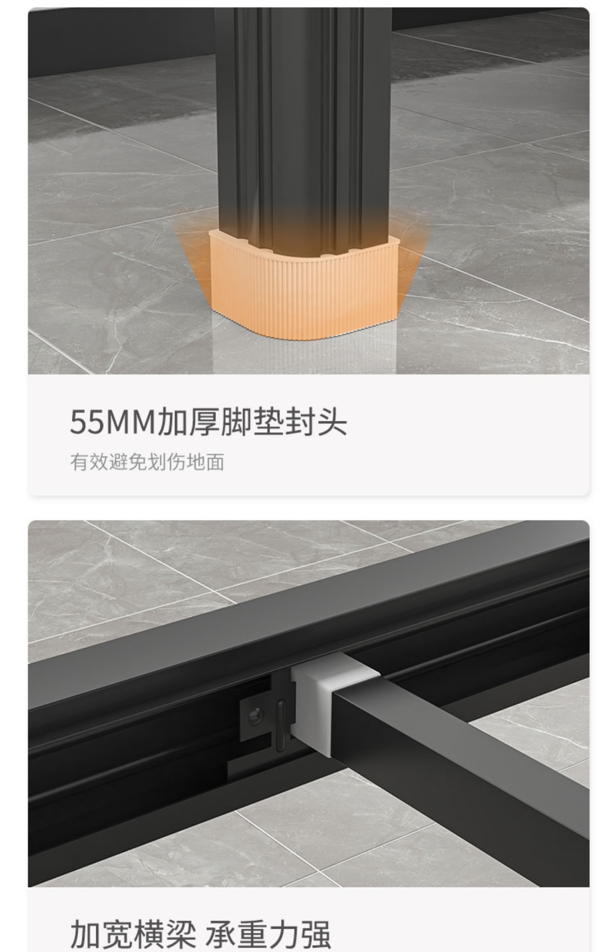 • 두꺼워진 럭셔리 블랙 폭 0.9m 침대판 + 매트리스 포함