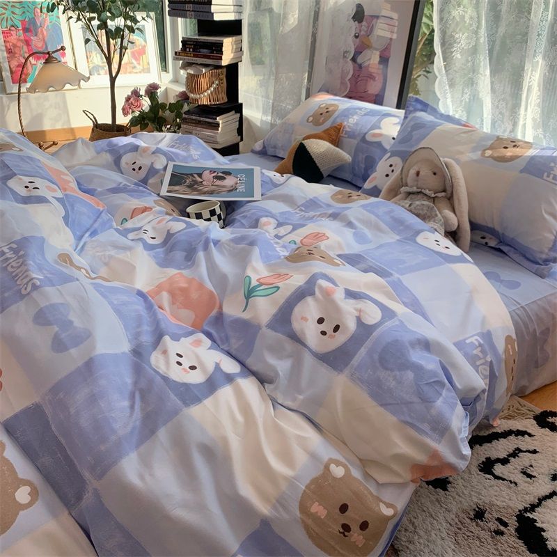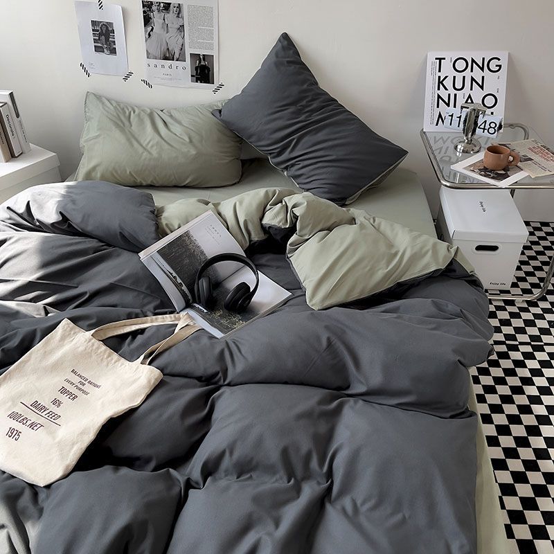 일본식 심플 문예 스타일 더블 솔리드 컬러 이불 커버 4피스 침구 시트 기숙사 Zhao스토어 가기
