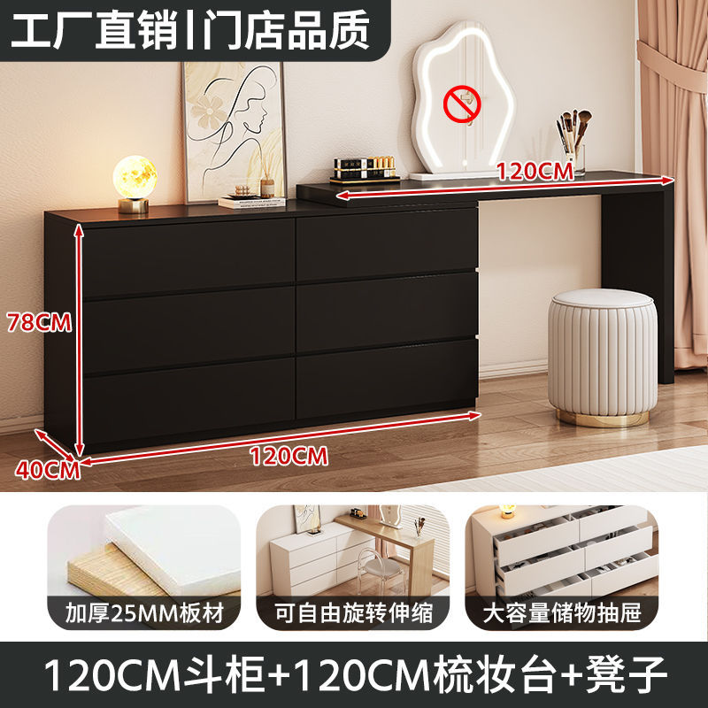 • 라이트 럭셔리 블랙 120 서랍장 + 120 화장대 + 거울 + 스툴