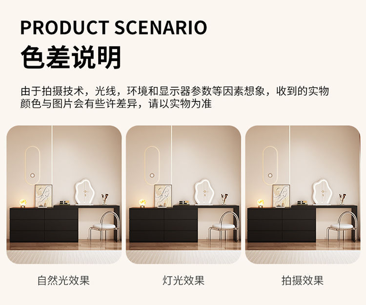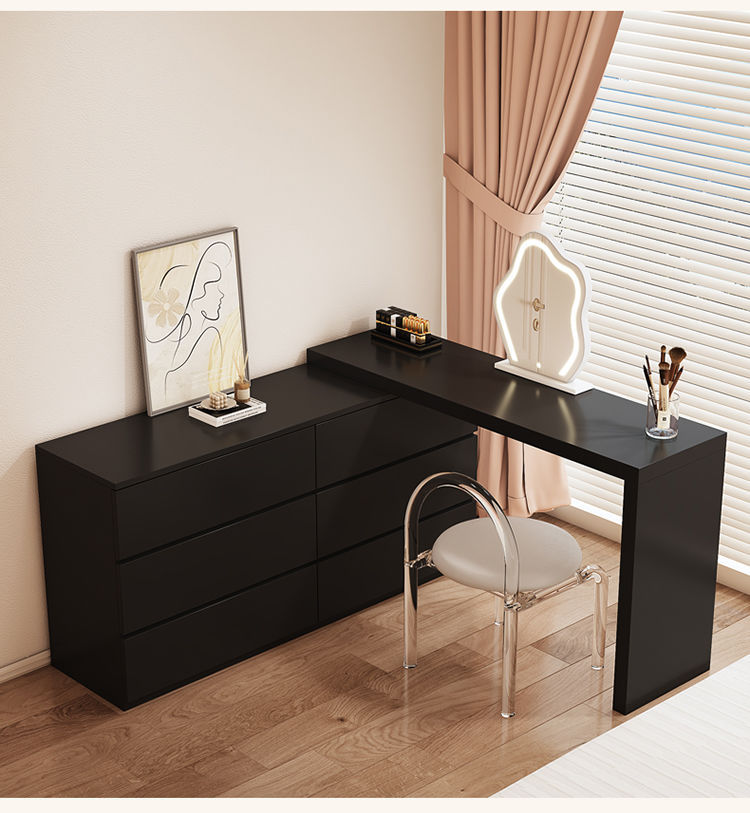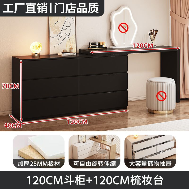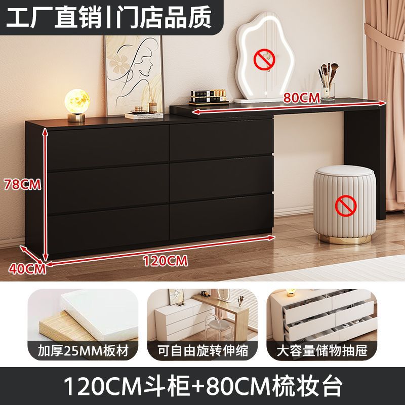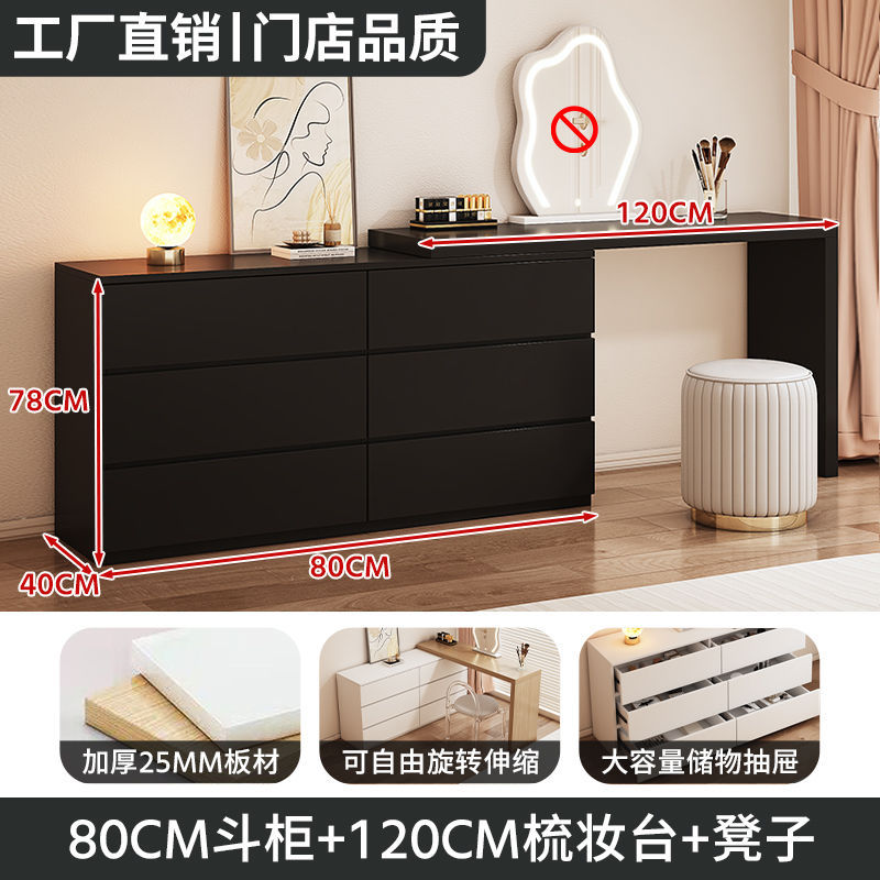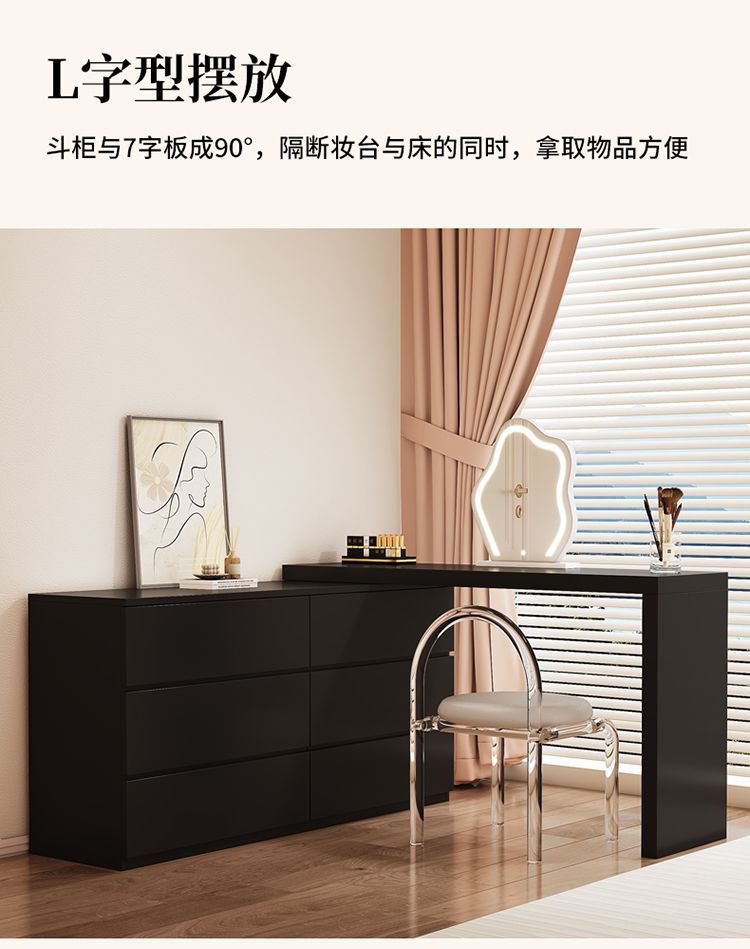 • 라이트 럭셔리 블랙 80 서랍장 + 120 화장대 + 거울 + 스툴