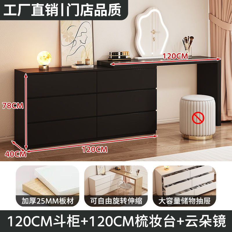• 라이트 럭셔리 블랙 120 서랍장 + 120 화장대 + 구름거울