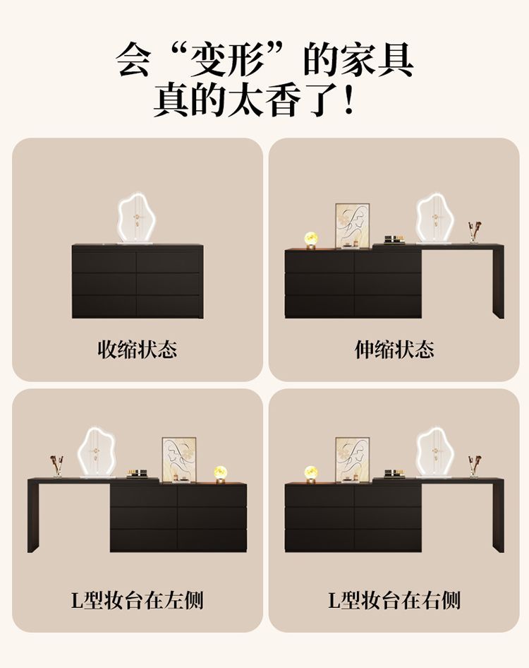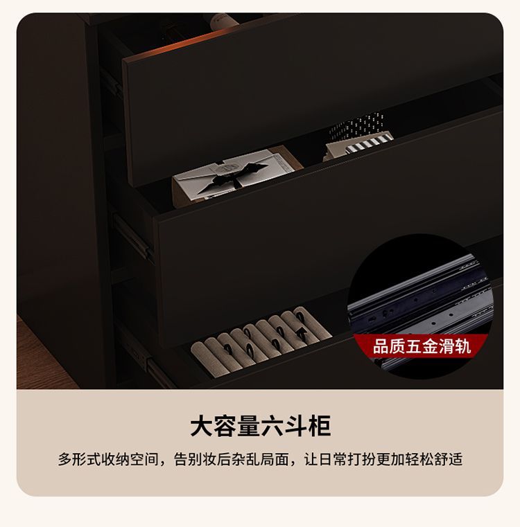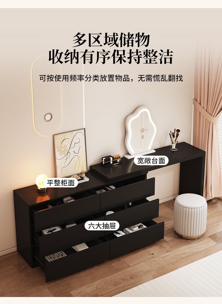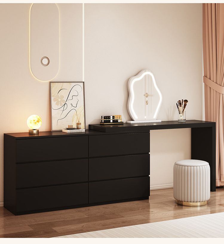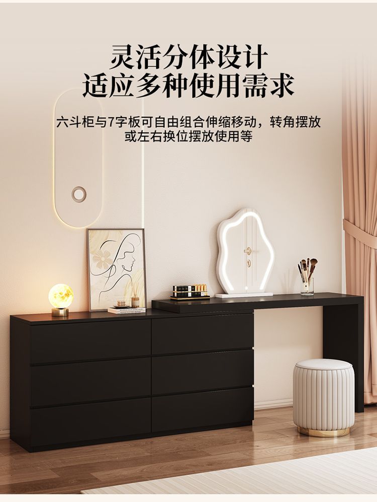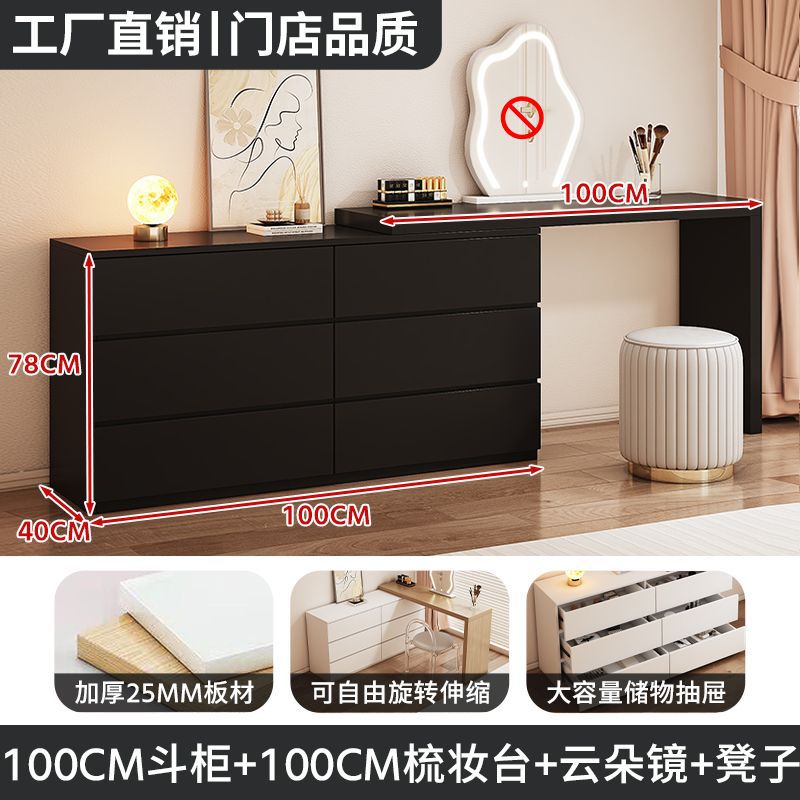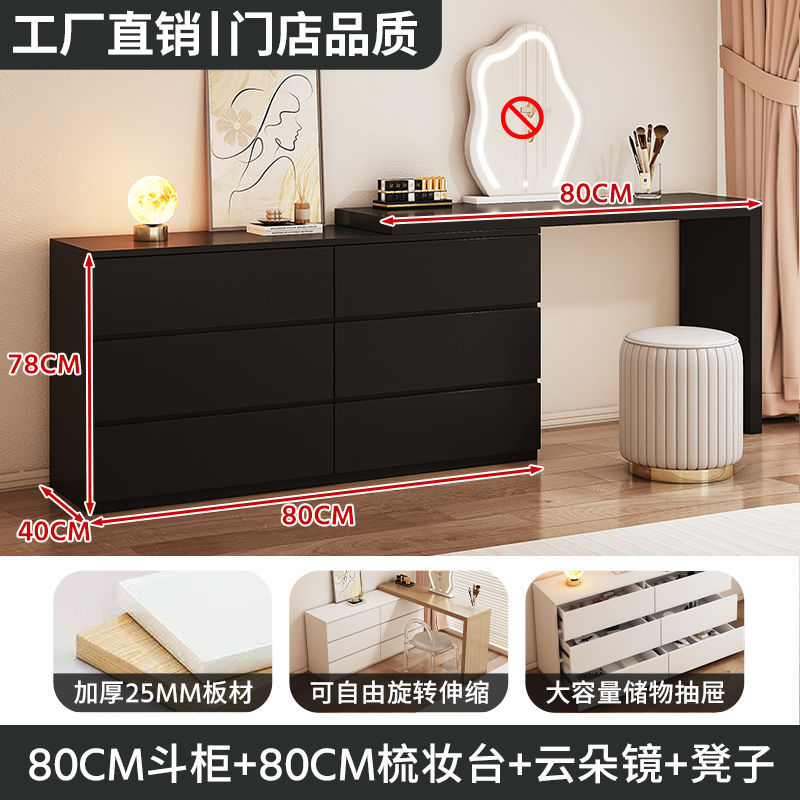 • 라이트 럭셔리 블랙 80 서랍장 + 80 화장대 + 거울 + 스툴