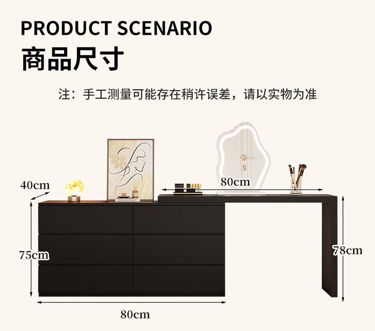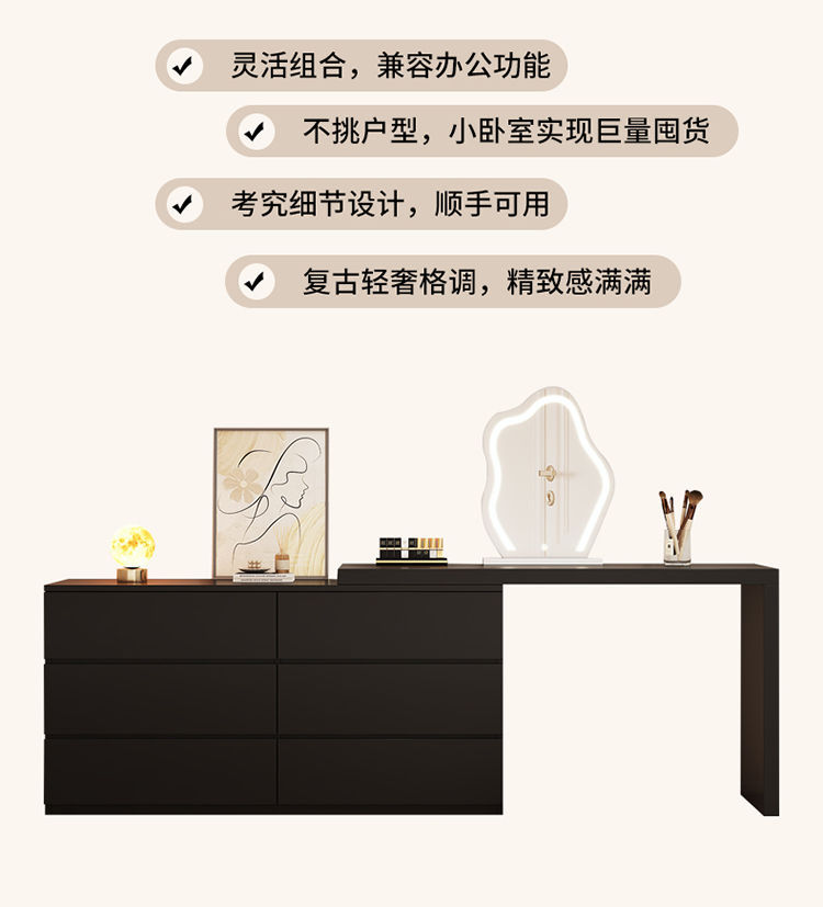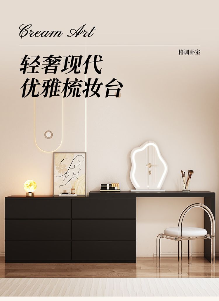• 라이트 럭셔리 블랙 80 서랍장 + 80 화장대 + 구름거울