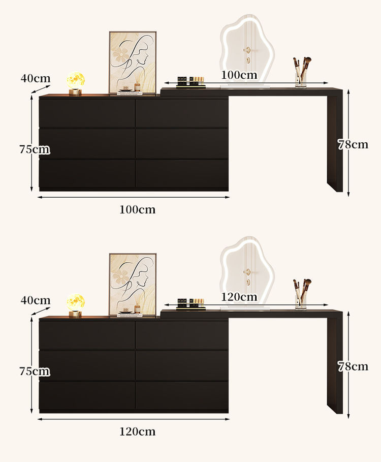 • 라이트 럭셔리 블랙 120 서랍장 + 120 화장대