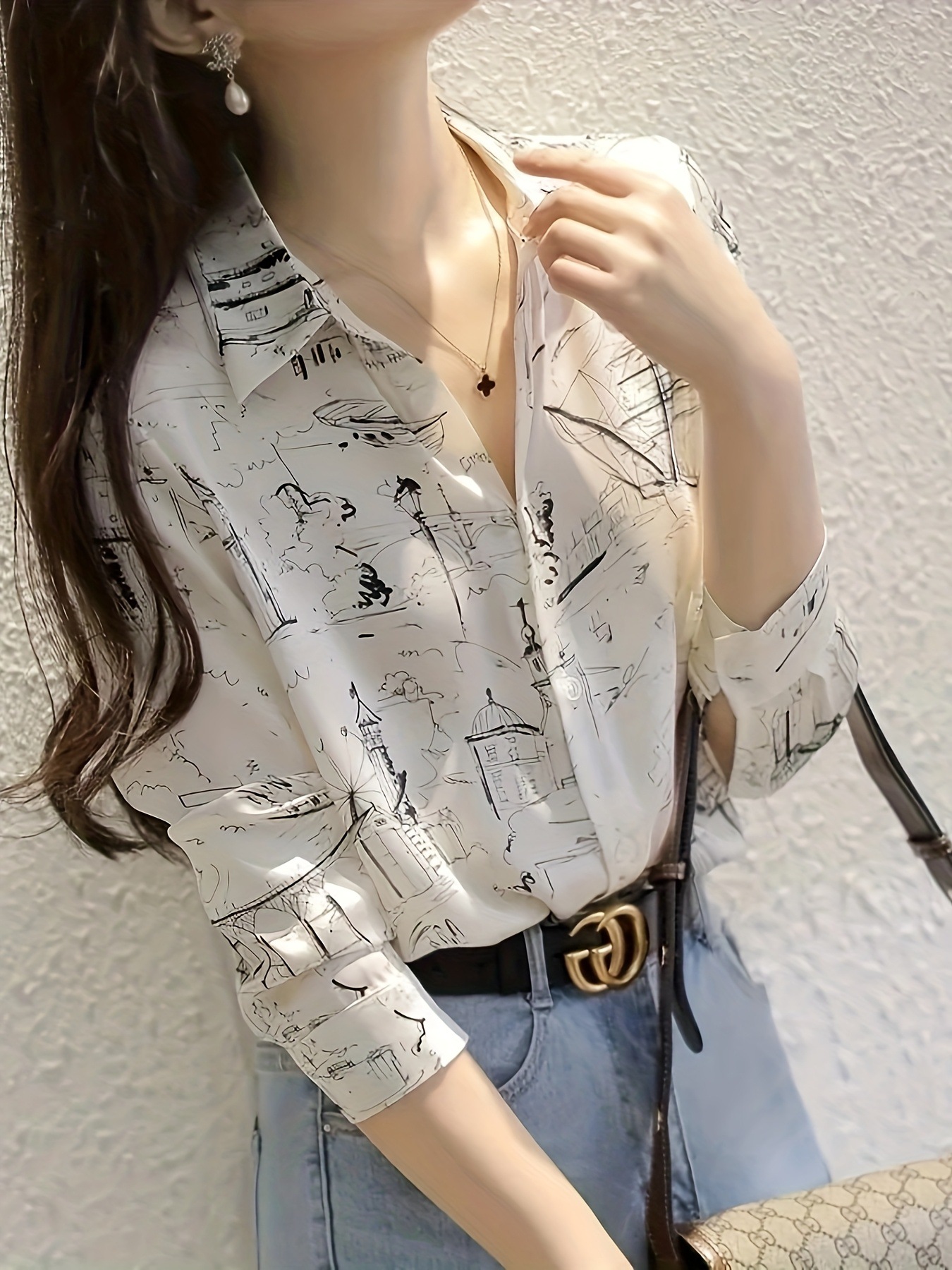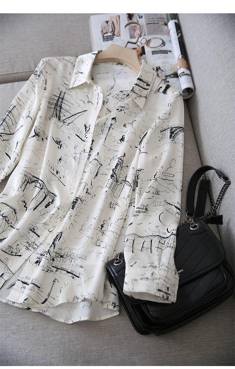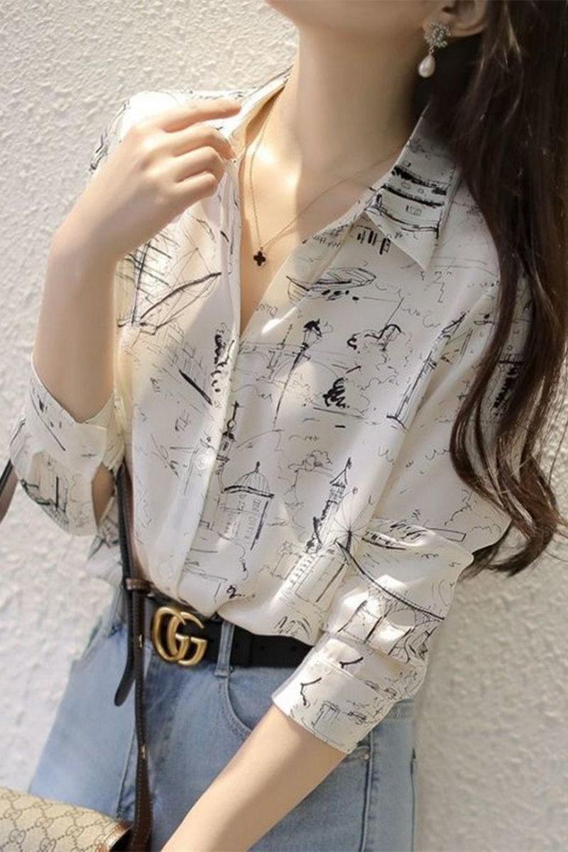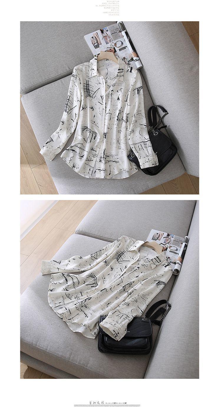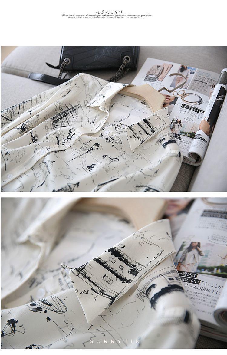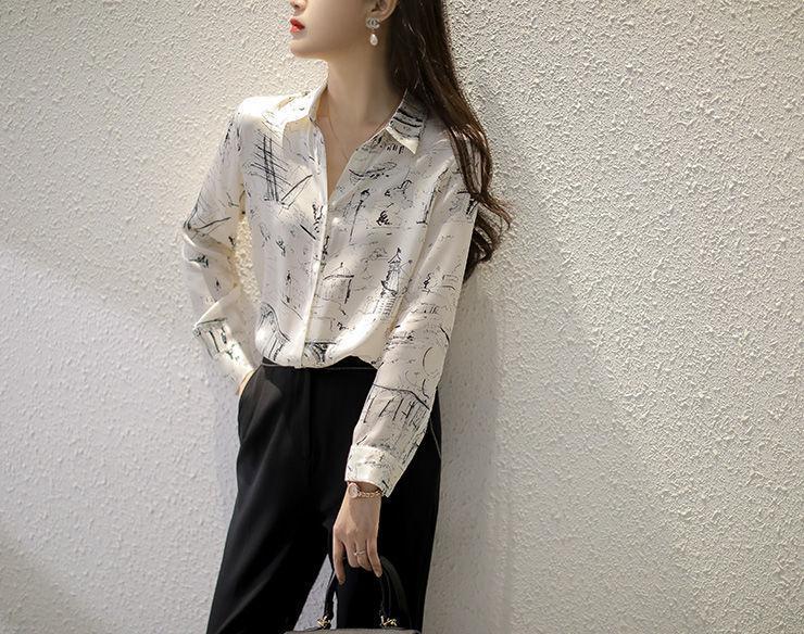 셔츠 여성 긴팔 프린트 봄, 가을 신작 쉬폰 탑 한국 스타일 기질 셔츠 루즈한 바닥 셔츠 프렌치 스타일