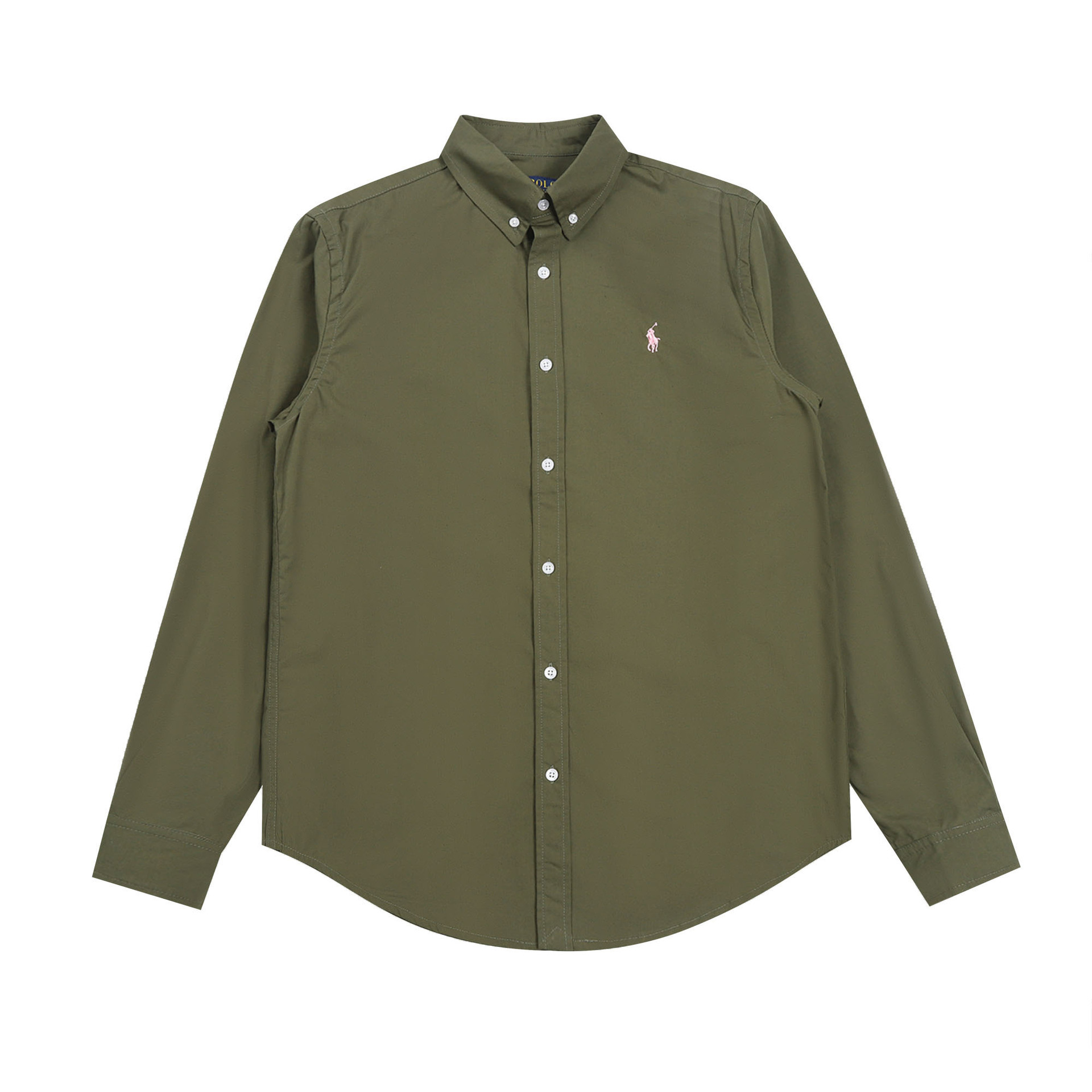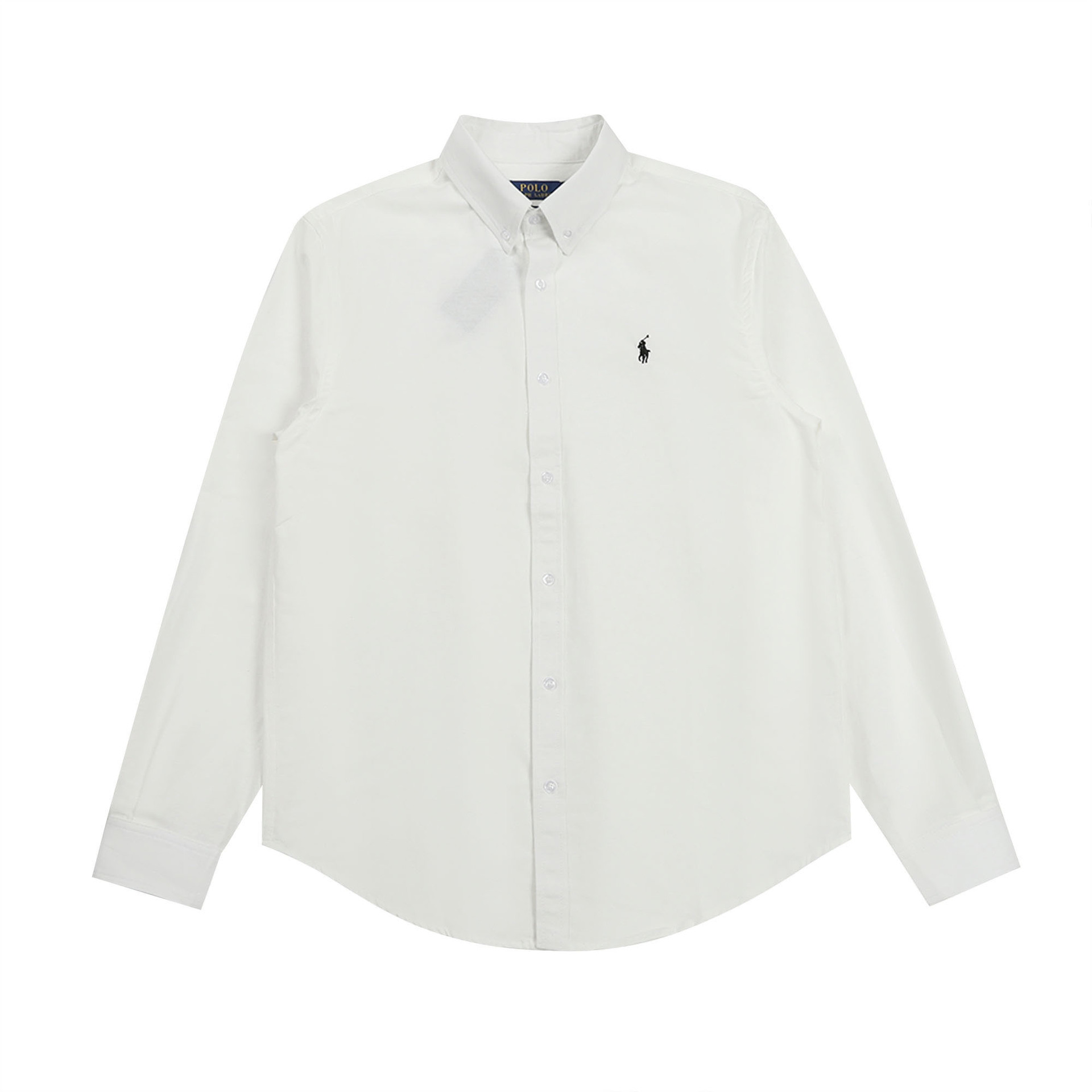 Ralph Lauren 옥스포드 솔리드 컬러 자수 브레스트 라펠 긴팔 캐주얼 남성 및 여성 셔츠