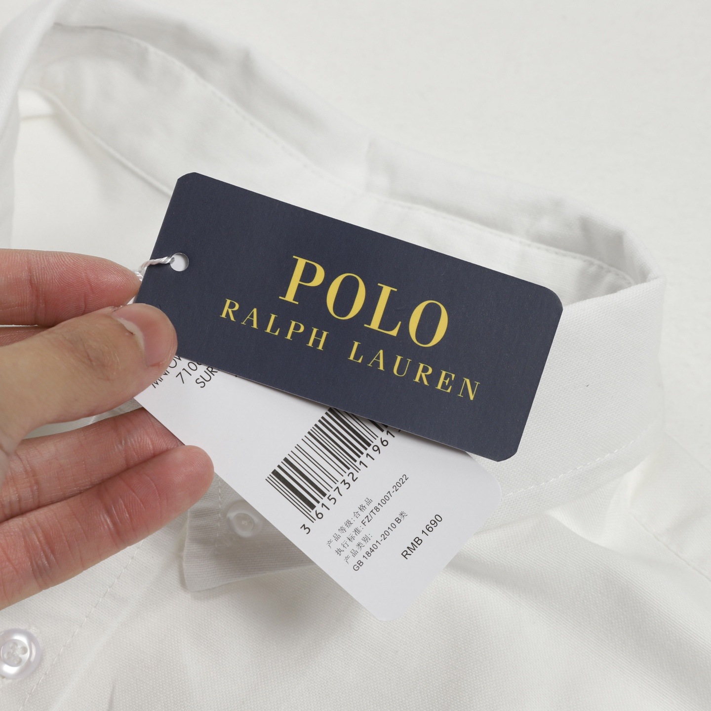 Ralph Lauren 옥스포드 솔리드 컬러 자수 브레스트 라펠 긴팔 캐주얼 남성 및 여성 셔츠스토어 가기