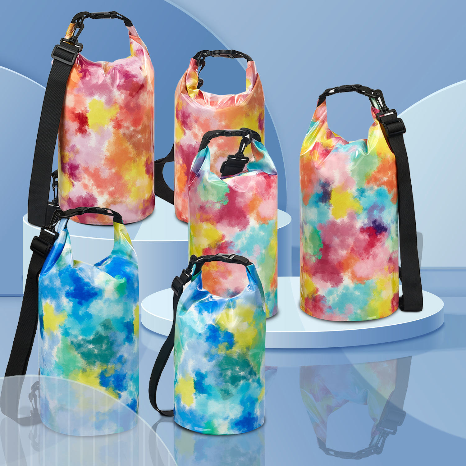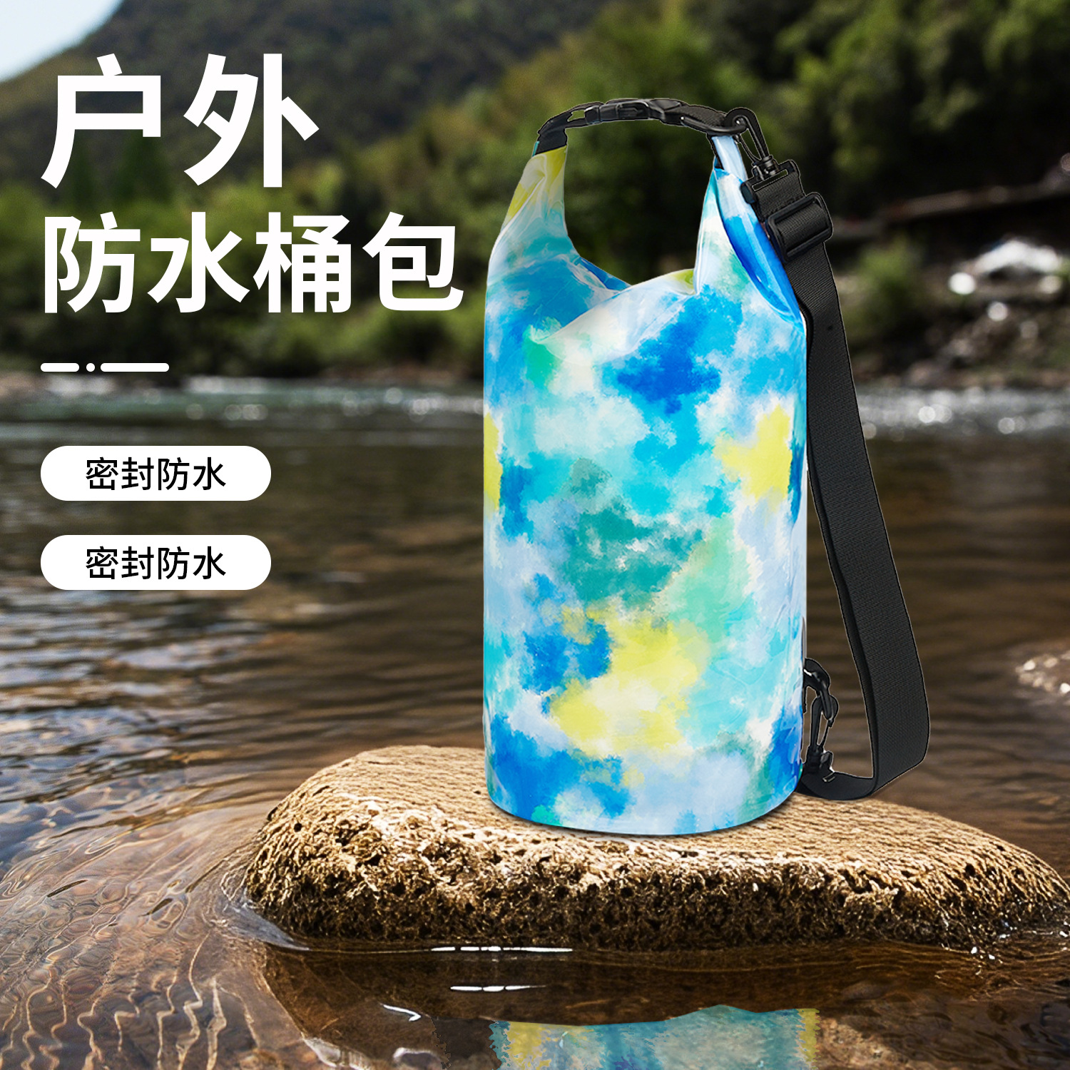 국경 간 방수 버킷 백 야외 PVC 얼룩진 다채로운 잉크 수영 다이빙 강 래프팅 방수 가방