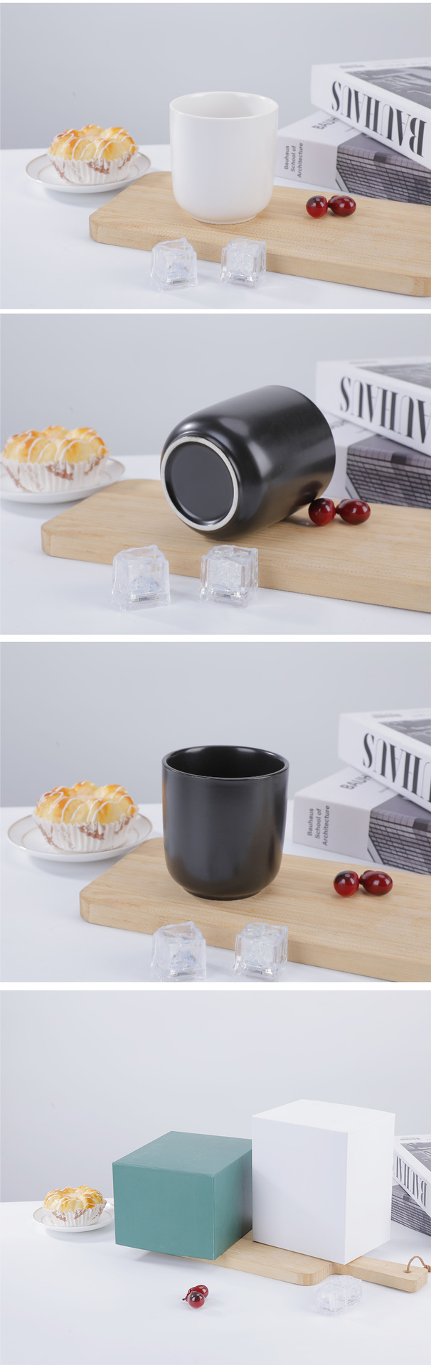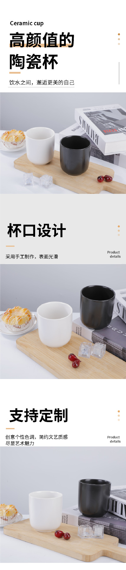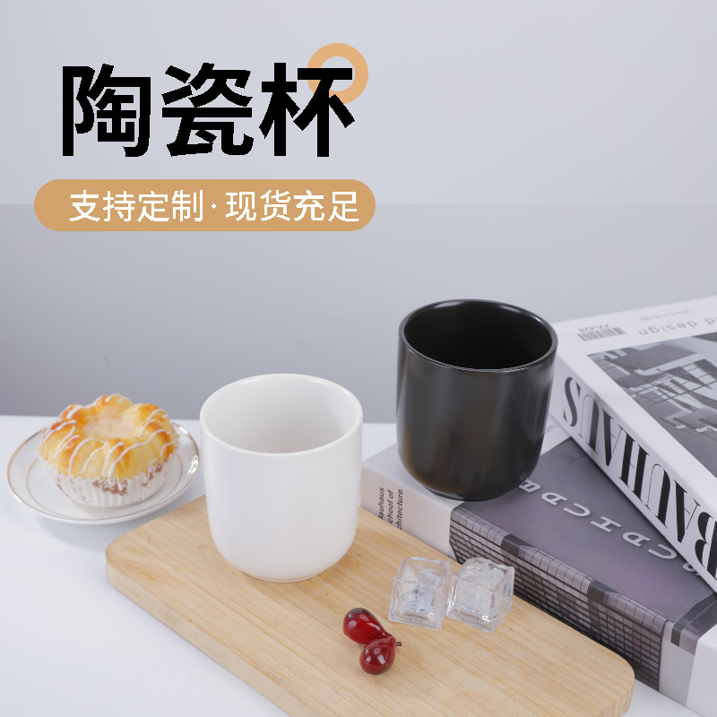 손잡이가 없는 간단한 일본식 흑백 세라믹 컵 구강 세정제 컵 홈 아침 식사 호텔 용품 커플 워터 컵 커피 컵