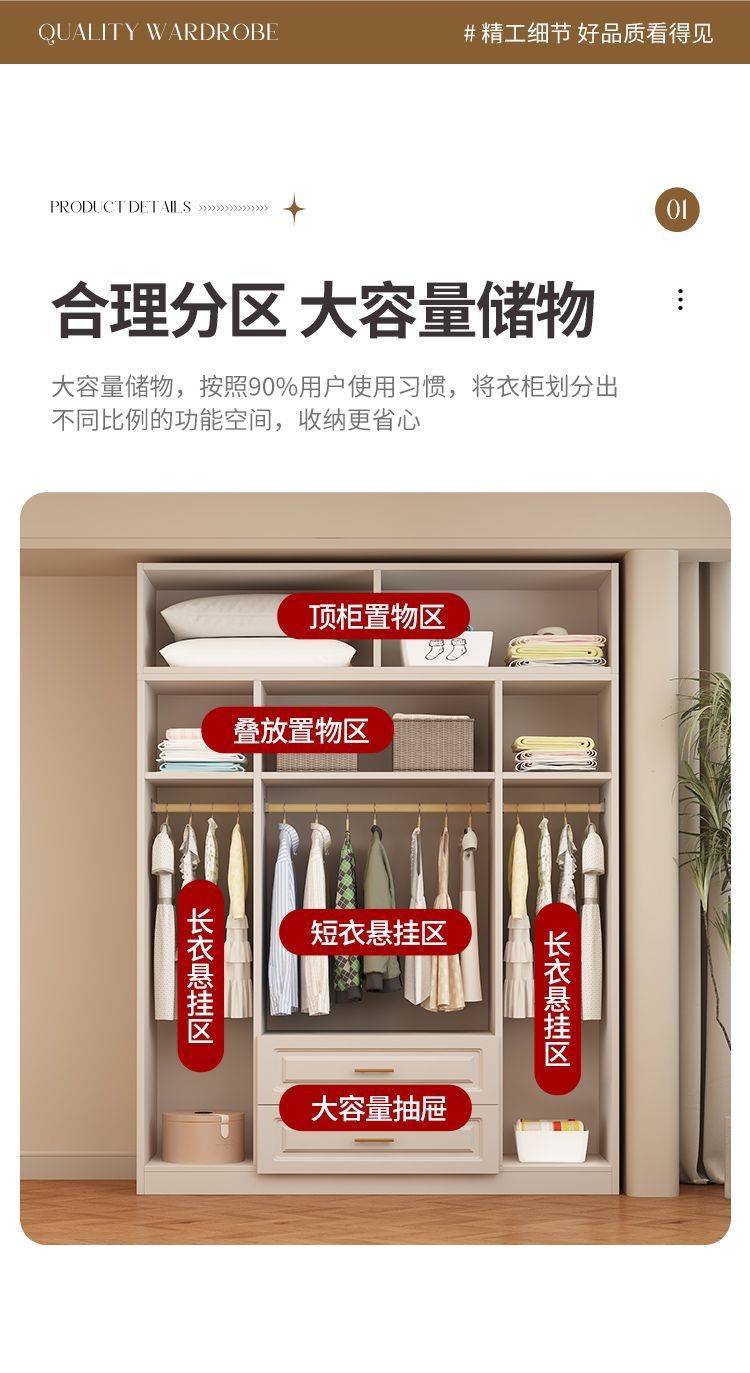 단단한 나무 옷장, 마스터 침실, 4 도어, 내구성, 거실, 대용량, 임대 옷장, 새로운 스타일, 두껍고 강화된 크림 스타일스토어 가기