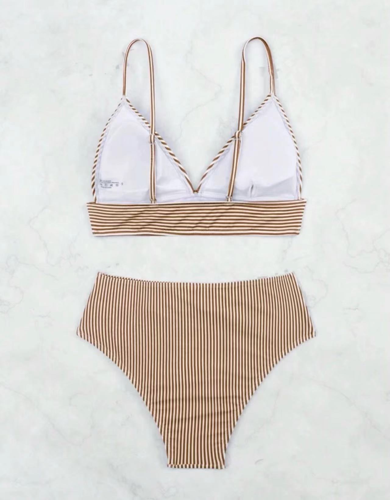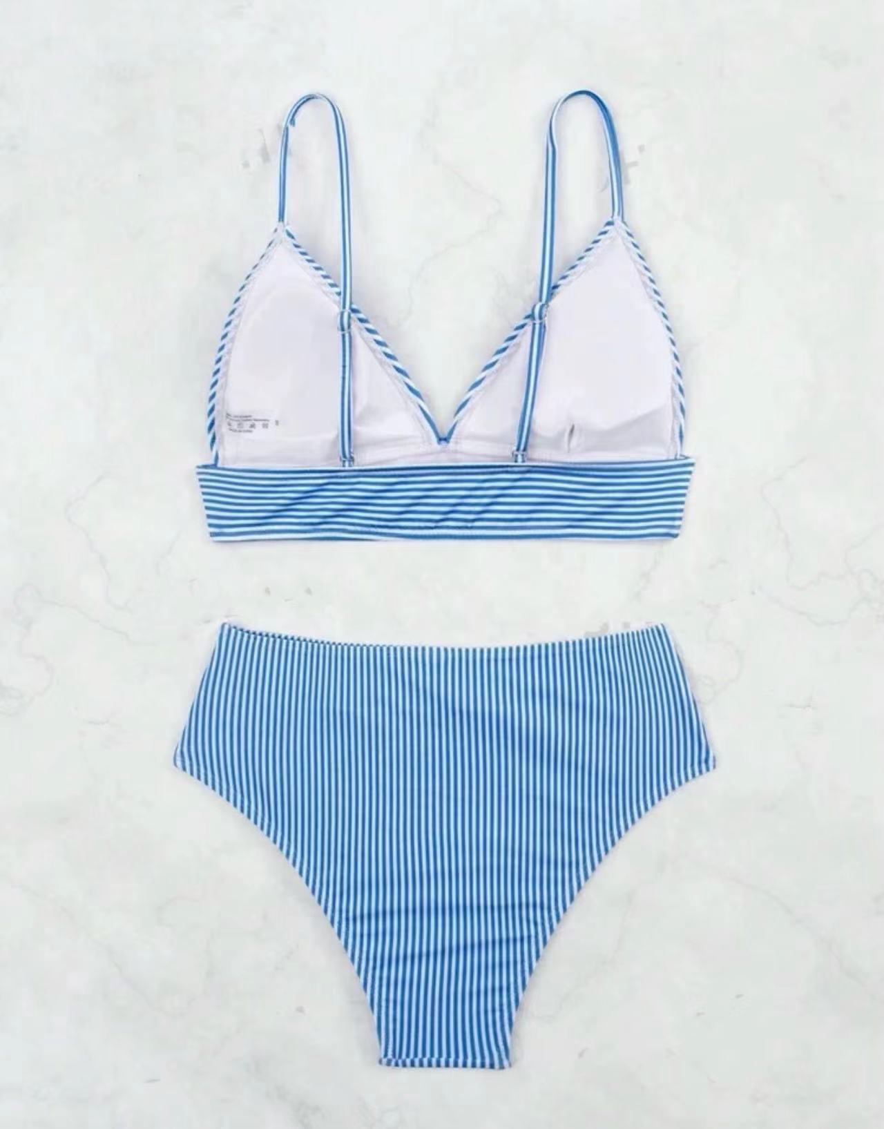 유럽과 미국의 새로운 스타일 스플릿 수영복 여성 섹시한 줄무늬 서스펜더 비키니 하이 웨이스트 타이트 크로스 보더 아마존 수영복 여성스토어 가기