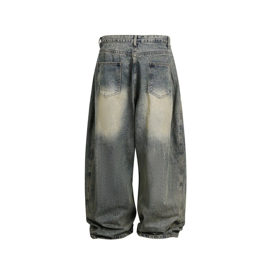 OUSWE 힙합 아메리칸 레트로 데님 바지 일본 빈티지 루즈 남성 루즈 와이드 레그 청바지 RK158