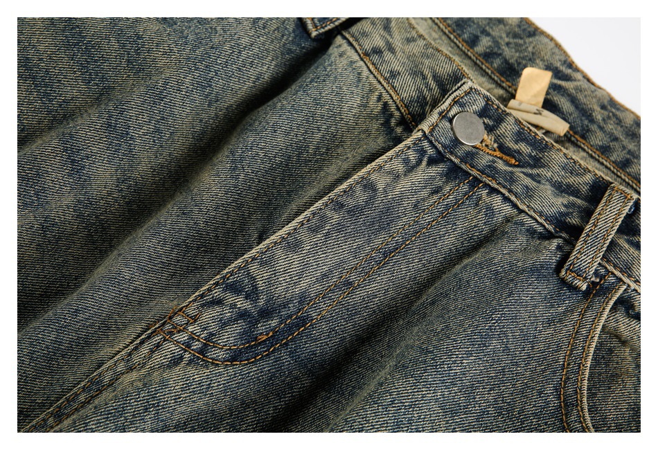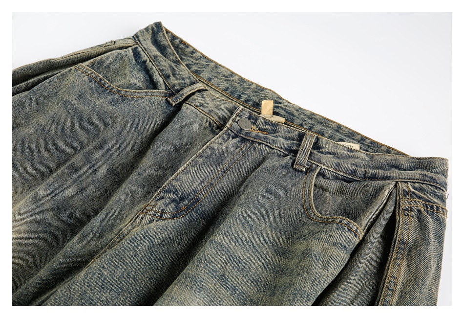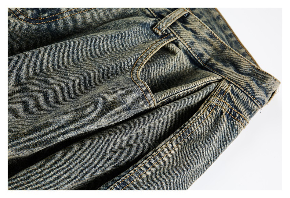 OUSWE 힙합 아메리칸 레트로 데님 바지 일본 빈티지 루즈 남성 루즈 와이드 레그 청바지 RK158스토어 가기