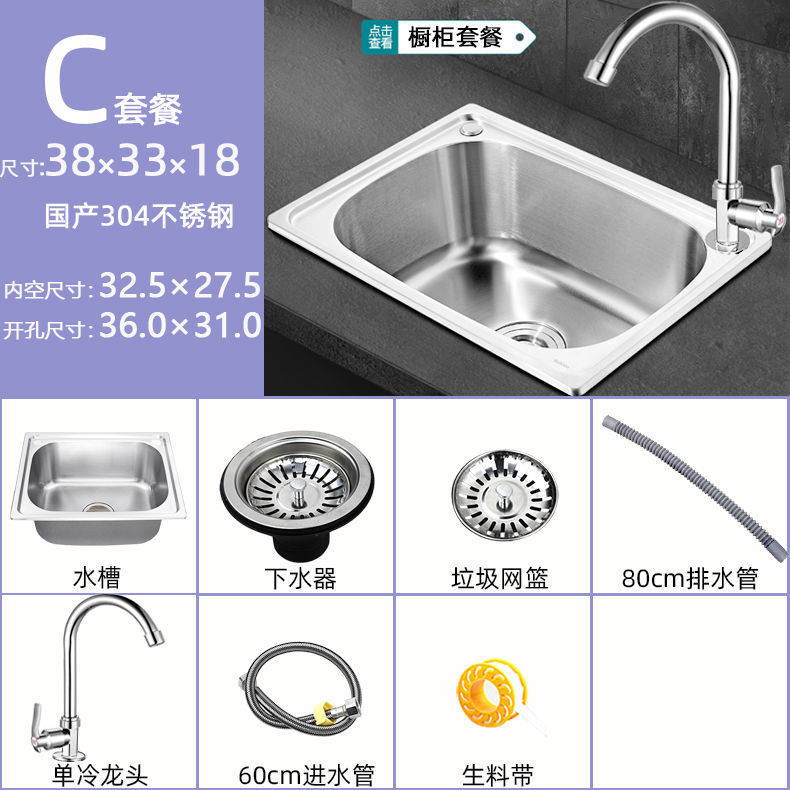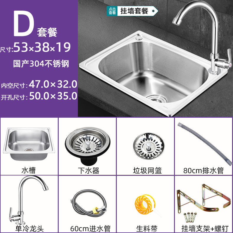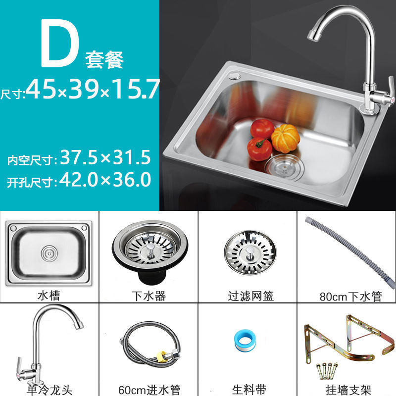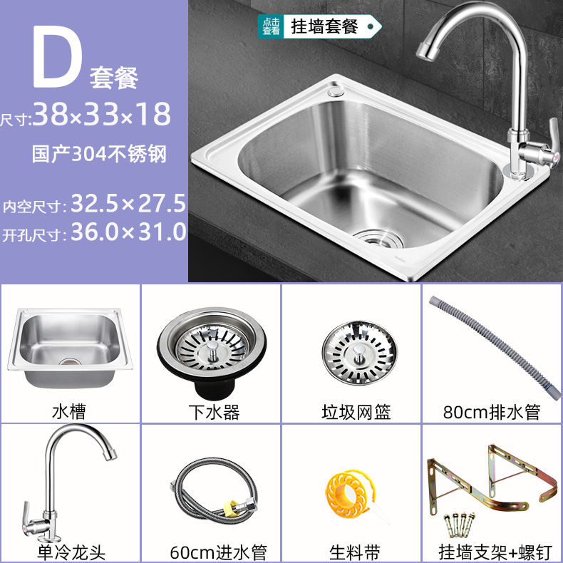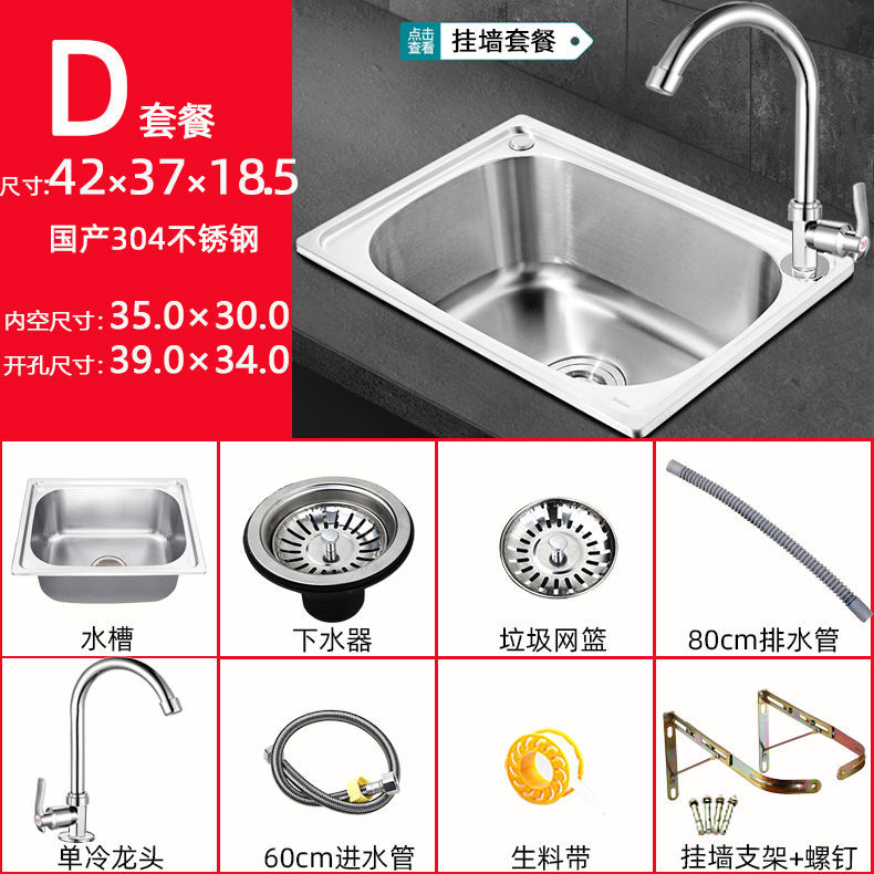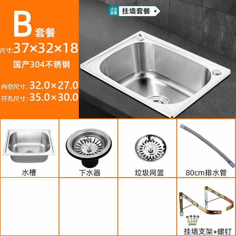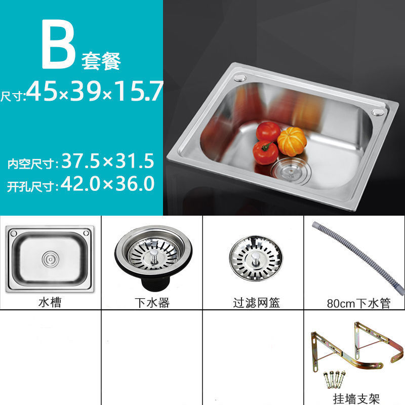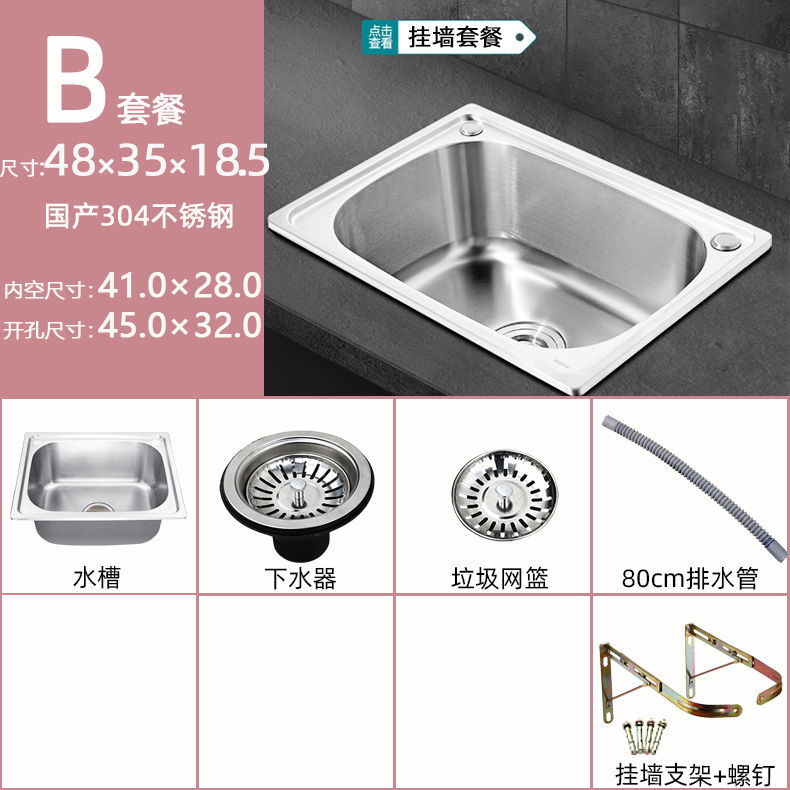 스탠드가있는 두꺼운 단일 슬롯 304 스테인레스 스틸 벽걸이 형 싱크대 주방 식기 세척 싱크대 발코니 세면대스토어 가기