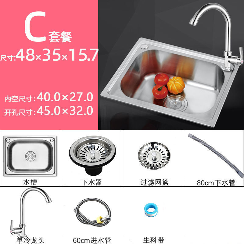 • 두꺼운 304 강철 48*35-C 패키지(세면대 + 배수구 + 수도꼭지)