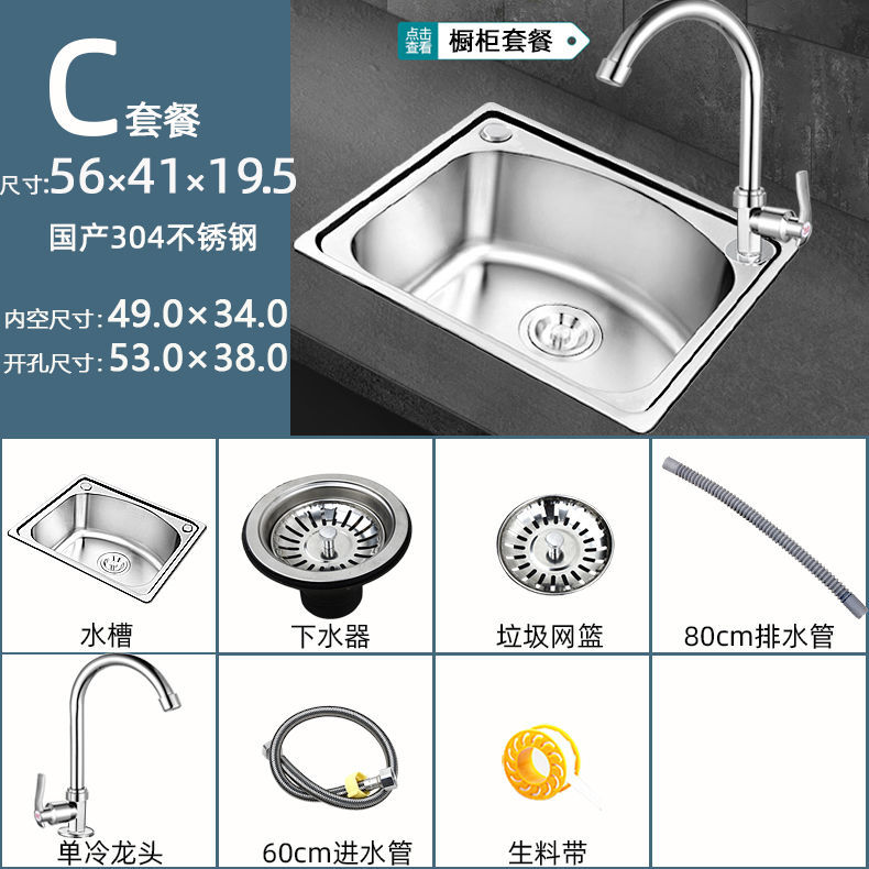 • 두꺼운 304 강철 56*41-C 패키지(세면대 + 배수구 + 수도꼭지)
