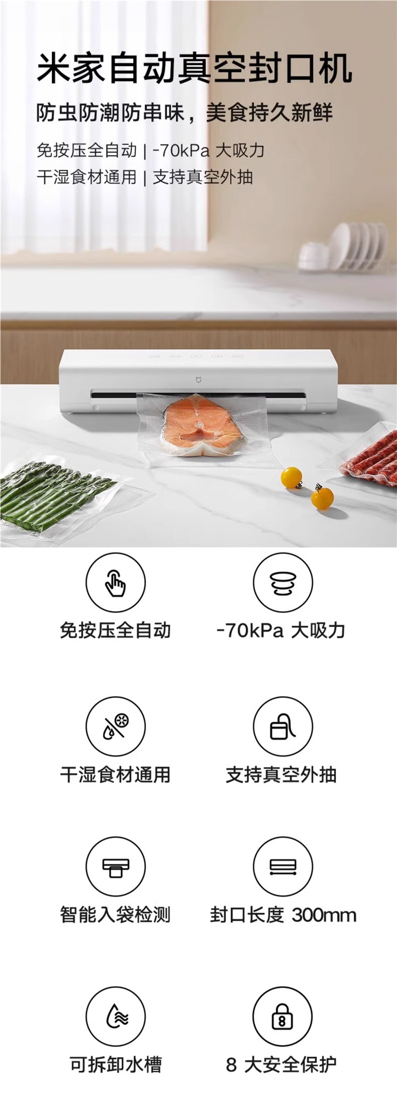 • "NO.1 칭찬 ""민황 LCD 고급 모델에는 진공백 60개가 포함되어 있습니다." ★ 씰을 넓히세요 ★ 다중 모드 ★ 60Kpa 강력한 흡입력