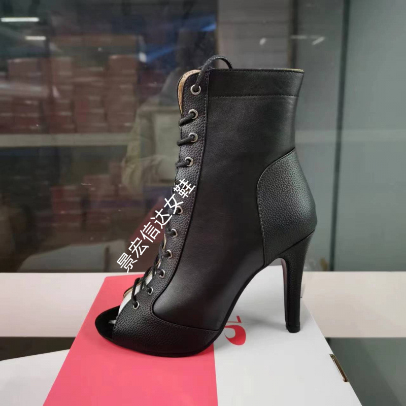 여성을위한 재즈 유럽과 미국의 레이스 업 피쉬 입 샌들 봄과 여름 중공 짧은 부츠 얇은 굽 하이힐 댄스 샌들 대형스토어 가기