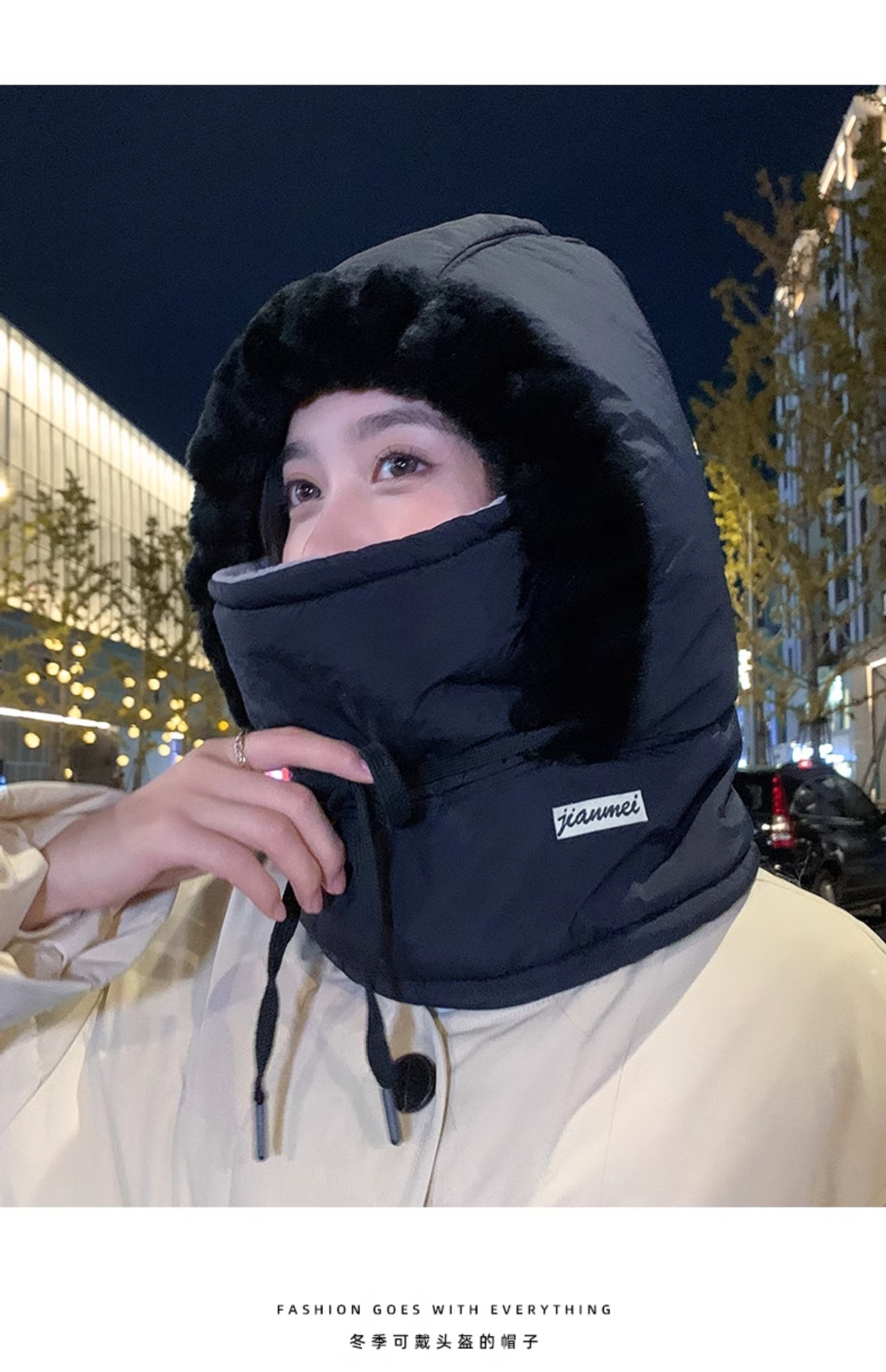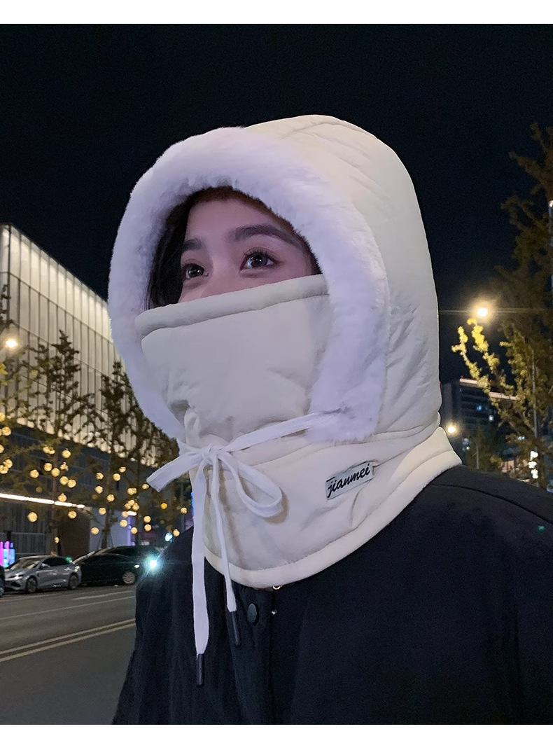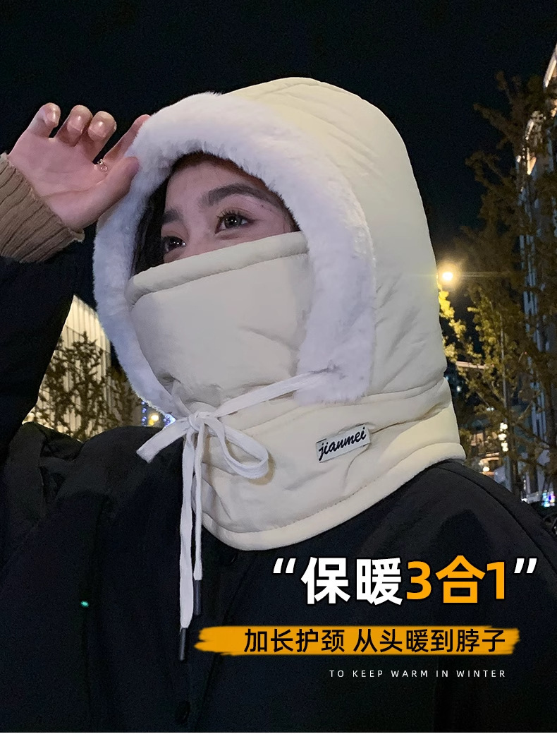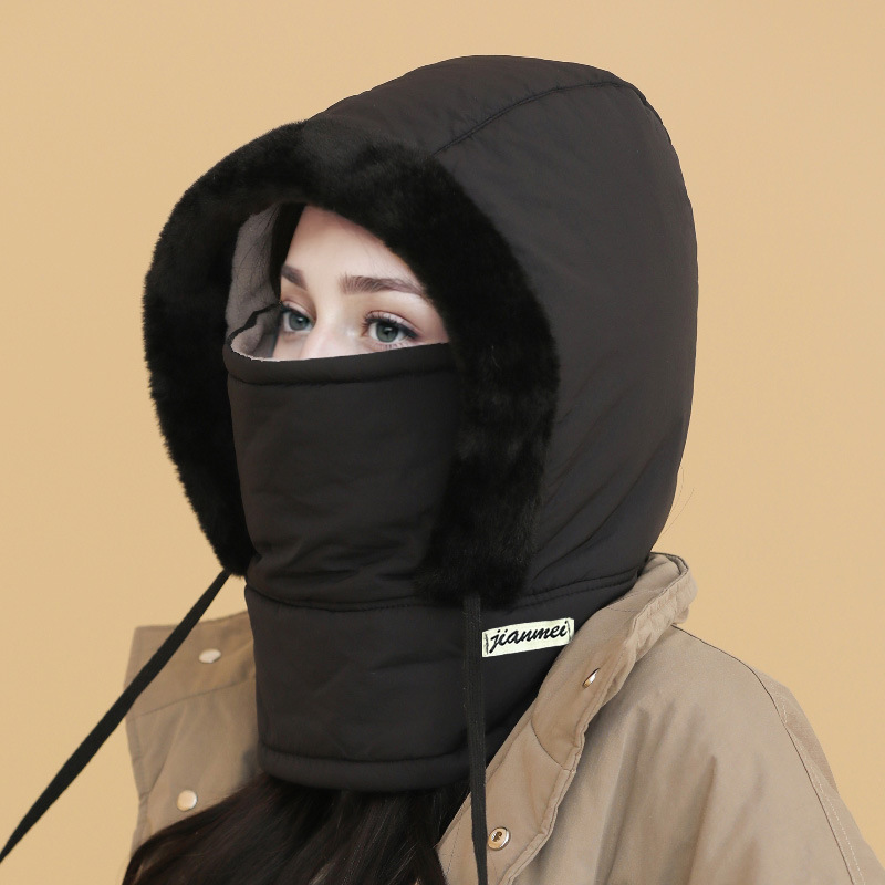 가을 겨울 남녀공용 다운 레이펑 모자, 일체형 두꺼운 따뜻하고 방한 후드, 마스크, 사이클링 방풍 모자스토어 가기