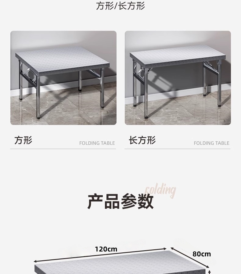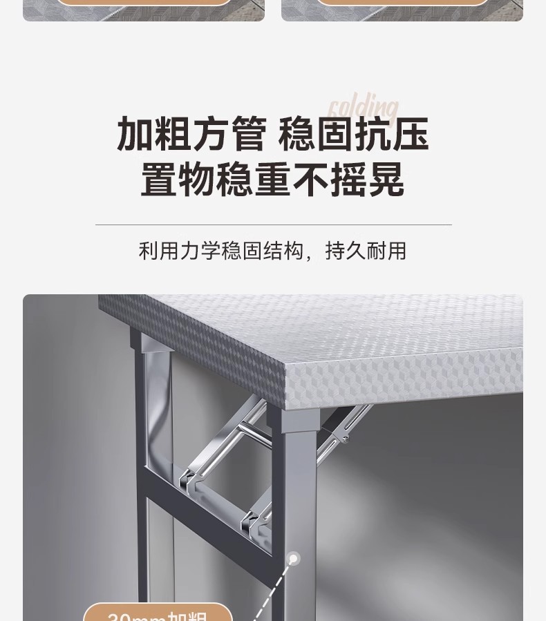 스테인레스 스틸 접이식 테이블 가정용 사각형 식탁 야외 휴대용 상업용 노점 임대 집 작은 테이블